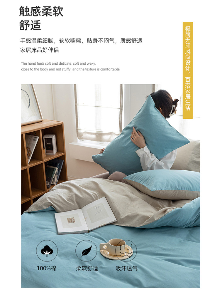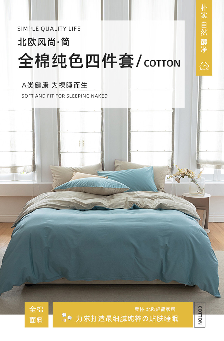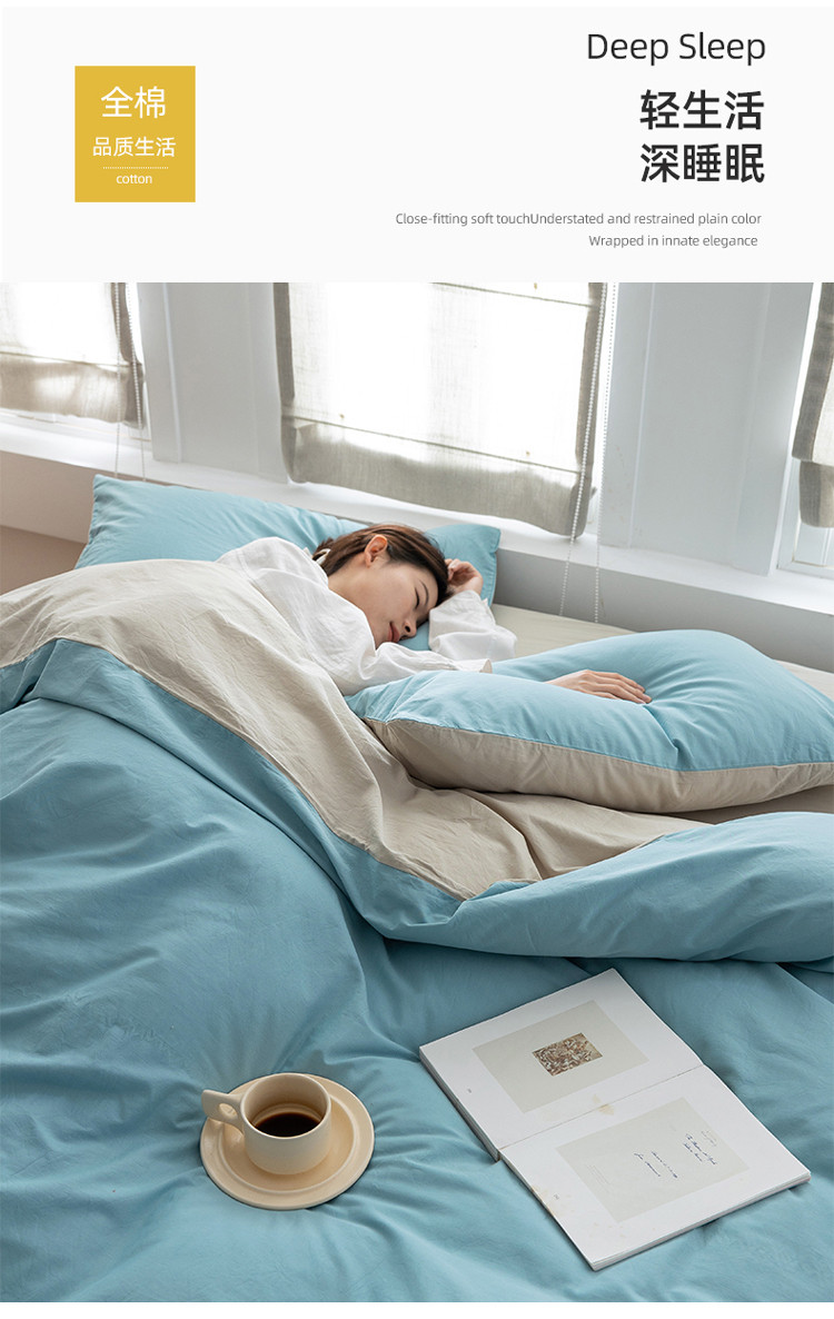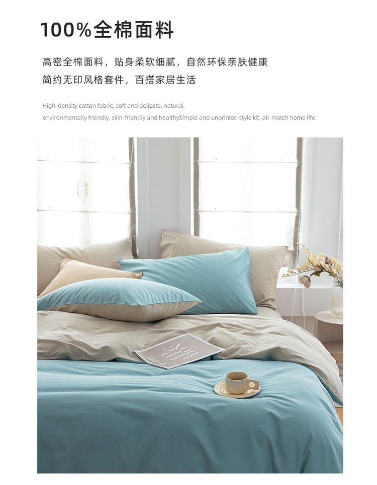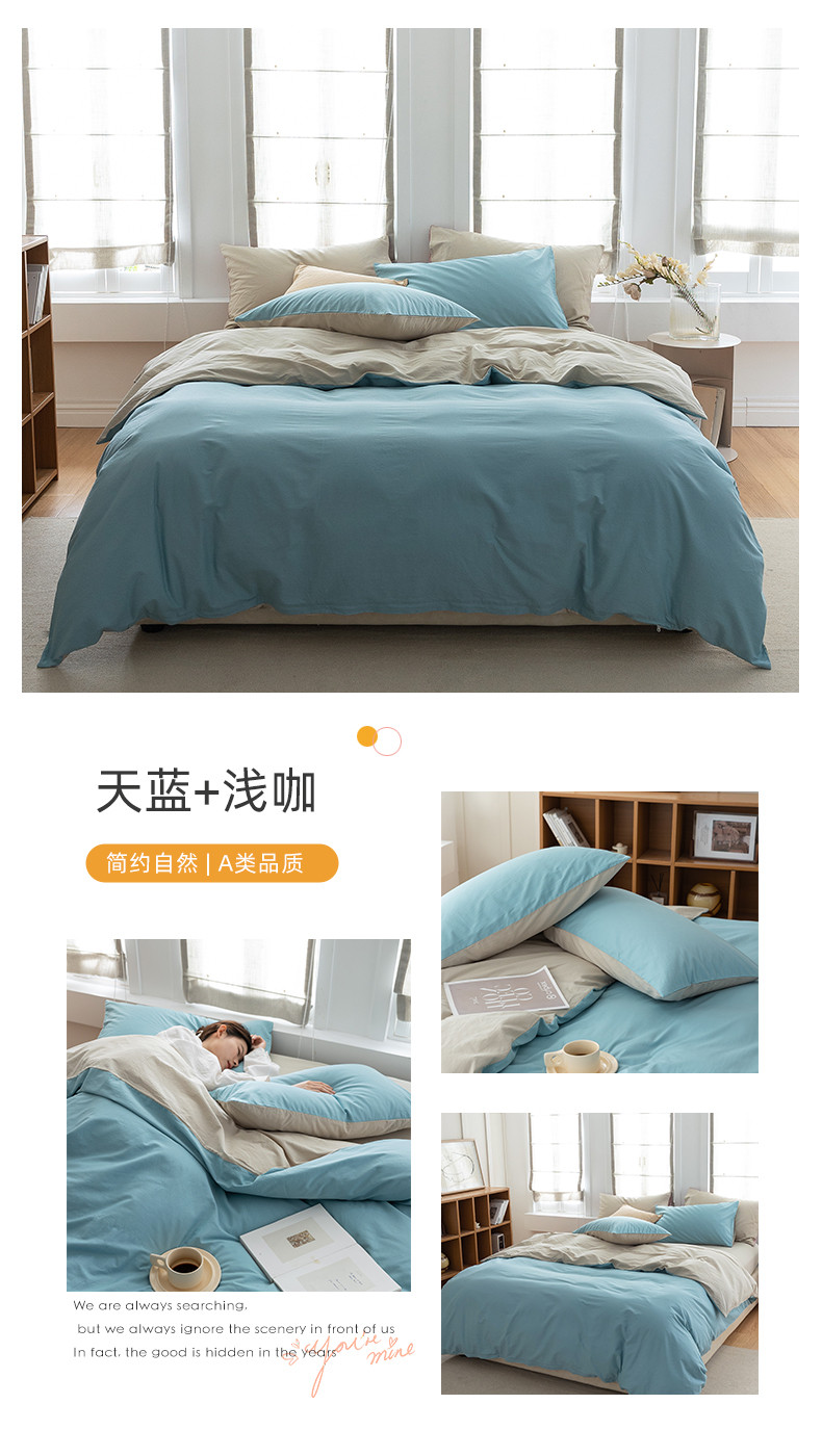 当前位置: 91家纺网 > 商品网购 > 床品套件 > 四件套 > 全棉普通四件套 > 寐眠 2022新款40s全棉纯色双拼四件套 天蓝+浅咖