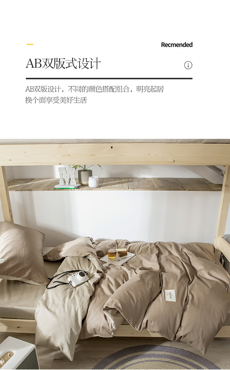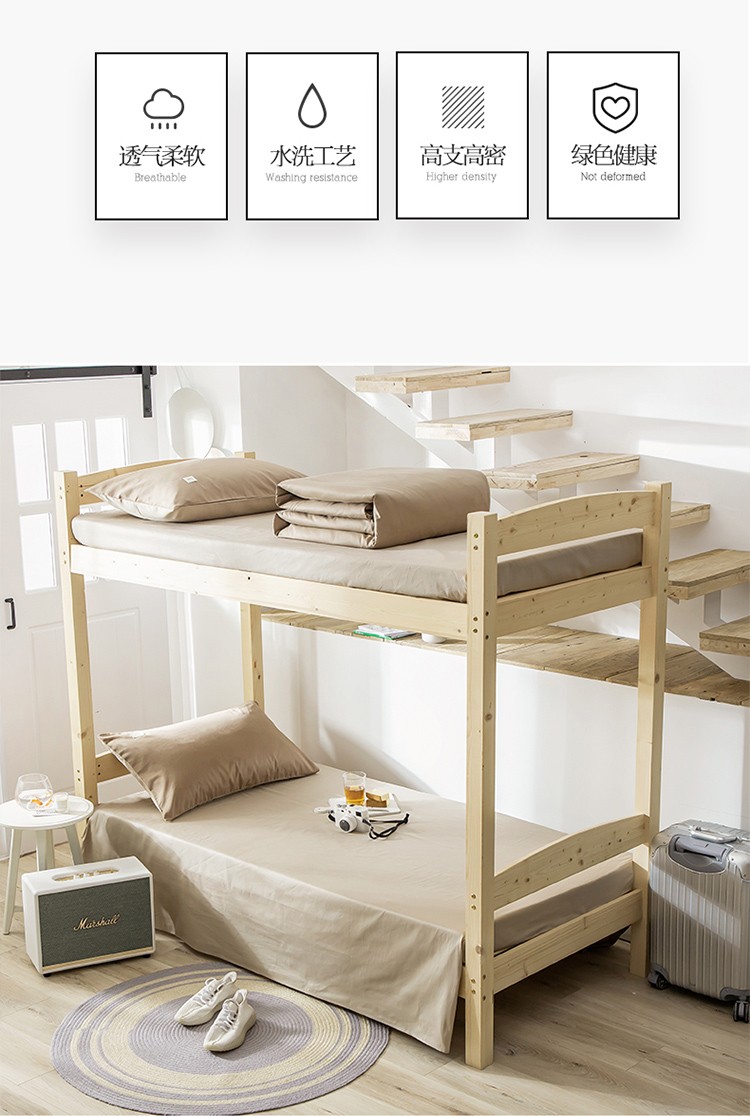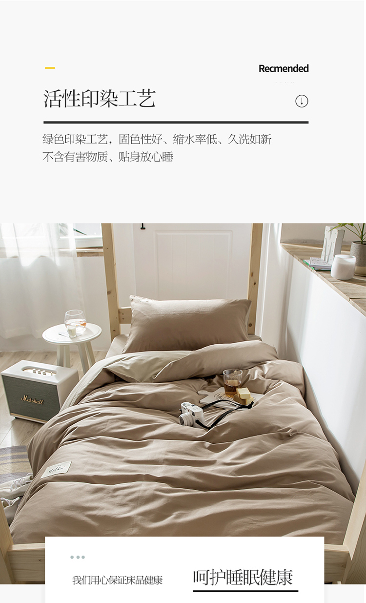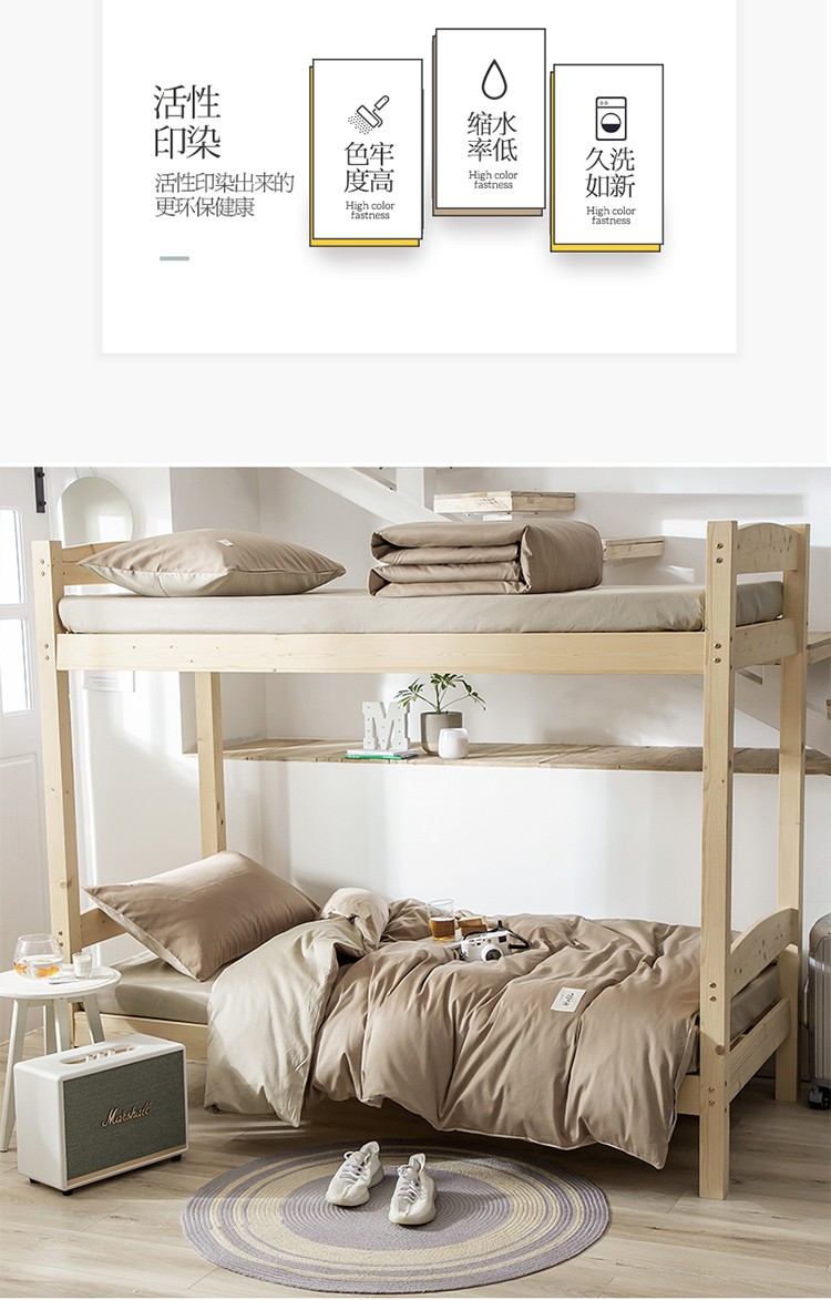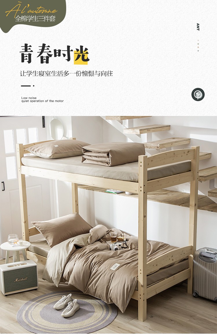 商品名称:纯色拼色全棉纯棉正宗13372学生宿舍三件套寝室上下铺六件套 米驼+卡其