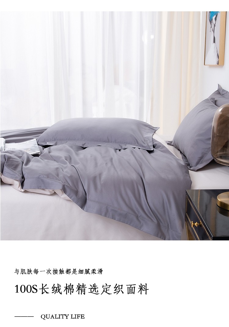 商品名称:网客 2024新款100支长绒棉四件套 双拼-灰