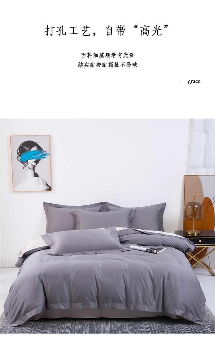网客 2024新款100支长绒棉四件套 双拼-灰