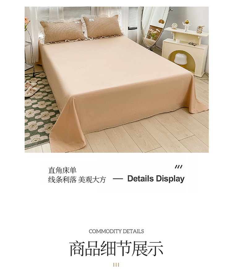 商品名称:雅萱 2022新款全棉华夫格水洗棉四件套花边款 米驼