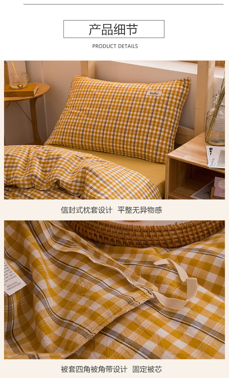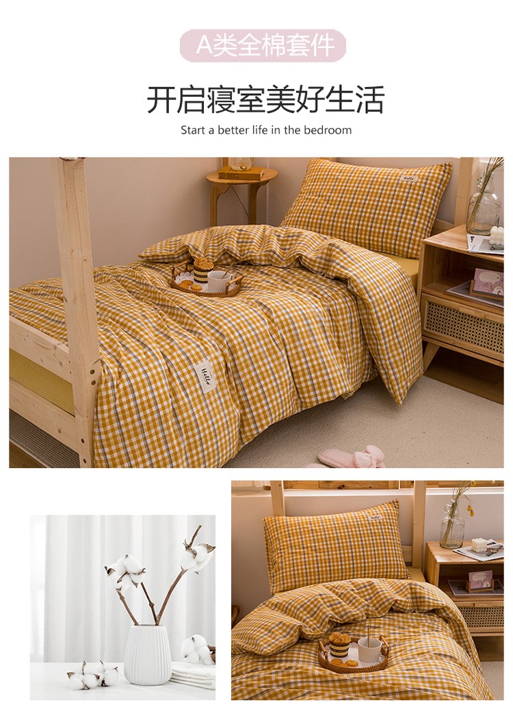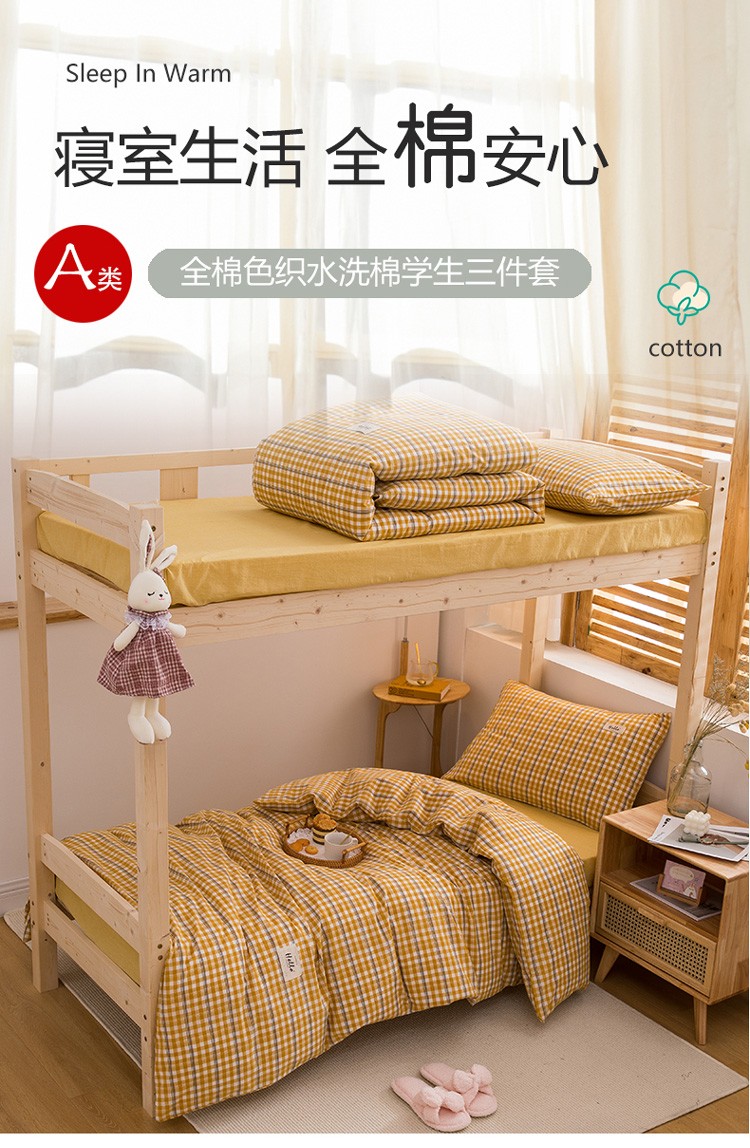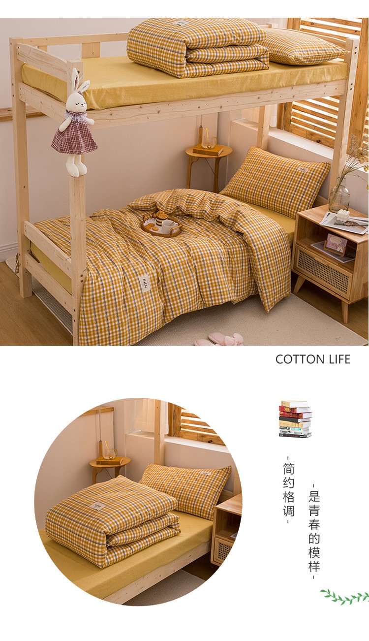 当前位置: 91家纺网 > 商品网购 > 床品套件 > 三件套 > 柠萌 新款A类全棉色织水洗棉学生上下铺全棉三件套 姜黄小格
