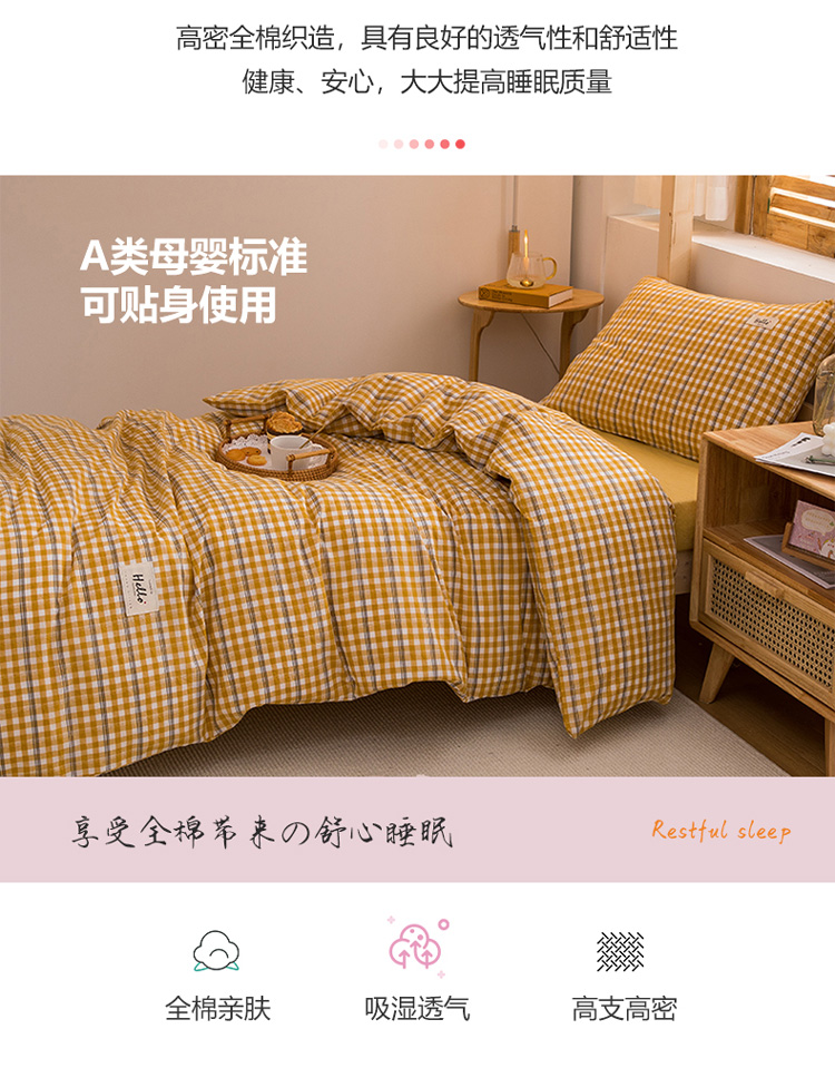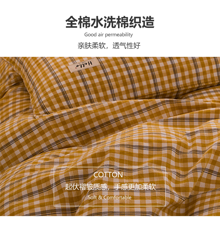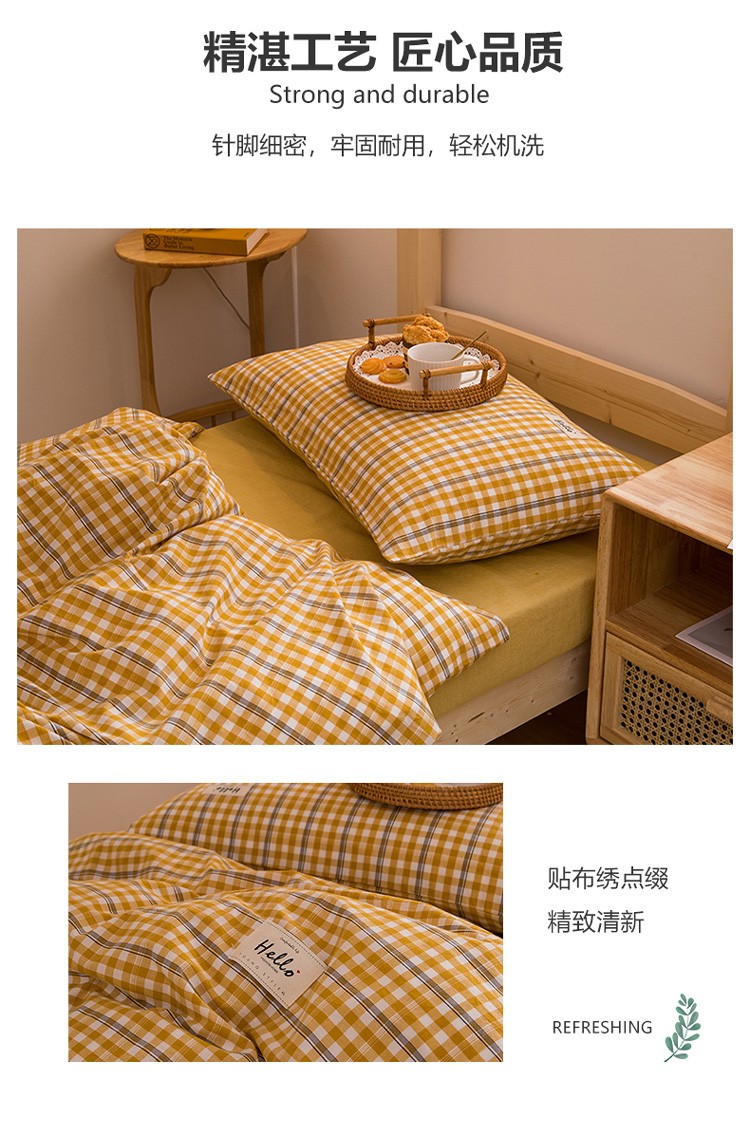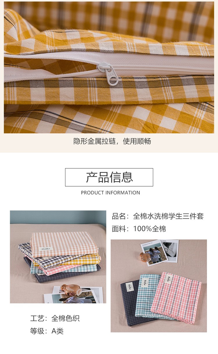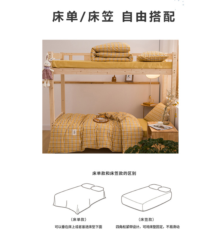 当前位置: 91家纺网 > 商品网购 > 床品套件 > 三件套 > 柠萌 新款A类全棉色织水洗棉学生上下铺全棉三件套 姜黄小格