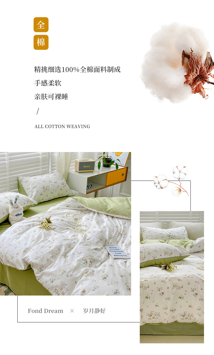 (总)捌月 2024新款直播爆品全棉森系小花边四件套,白茶,半夏,晨曦,绿芜,陌染,清欢,素颜,汀兰,微微,向往,知婳