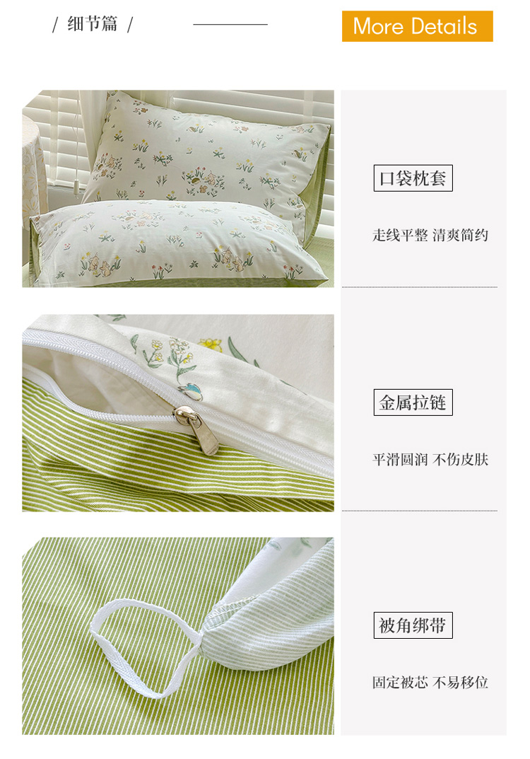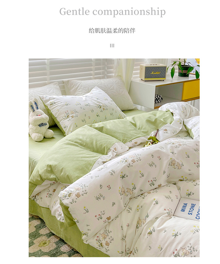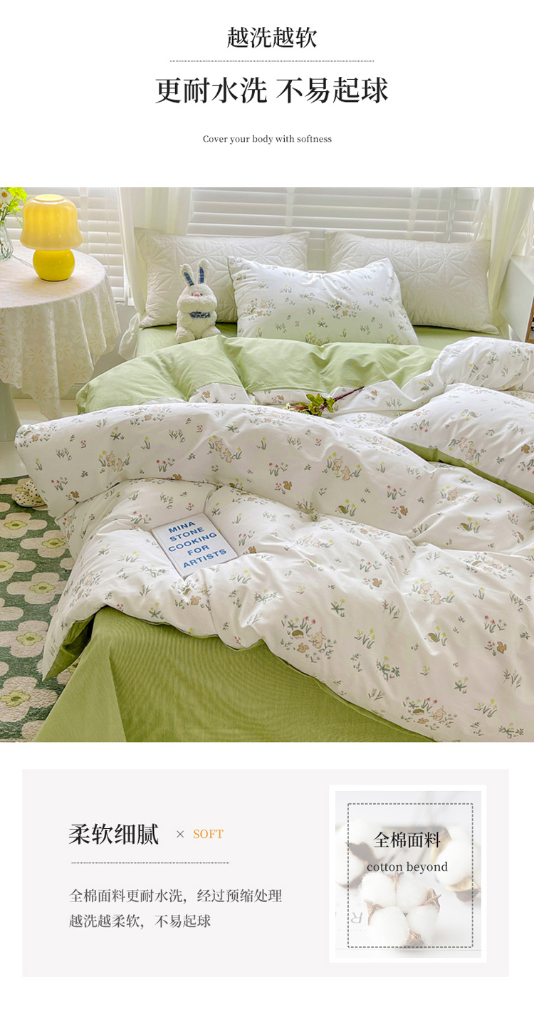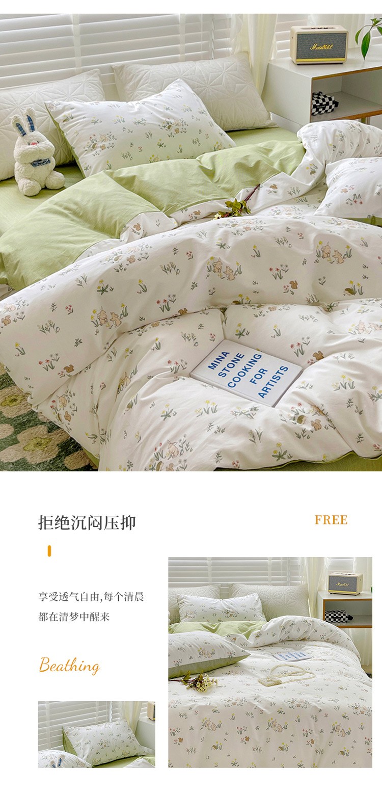 (总)捌月 2023新款13372全棉四件套竖纹印花系列,草莓园,兔小姐,小兰花,小甜心