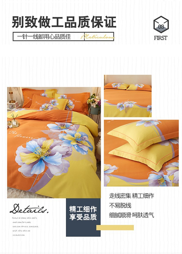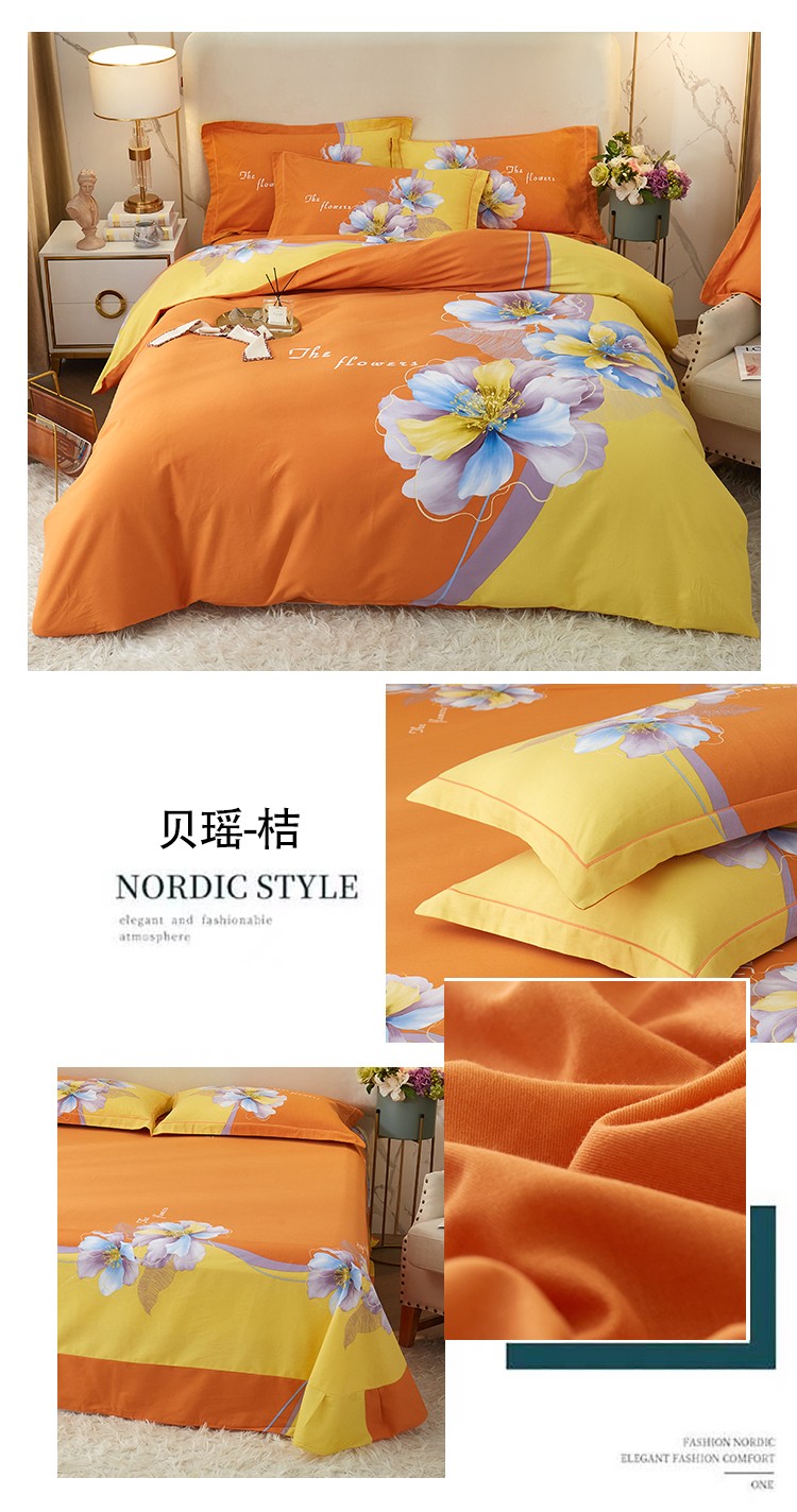 商品名称:金纱玉纺2022新款全棉生态大版磨毛四件套 贝瑶-桔