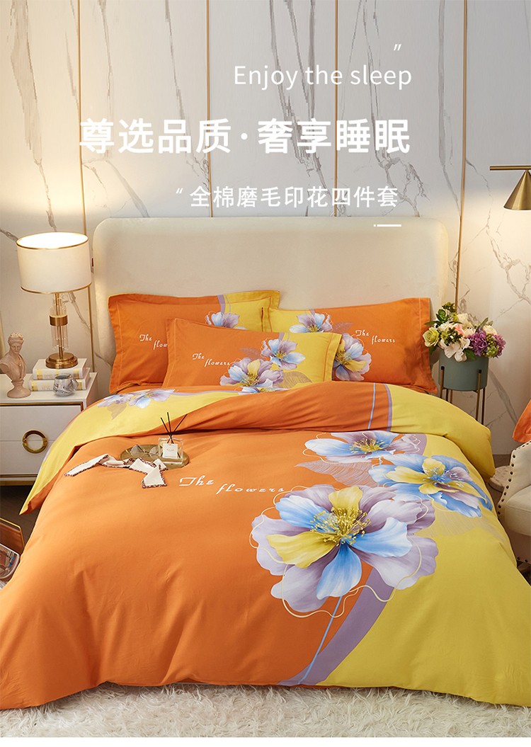 金纱玉纺2022新款全棉生态大版磨毛四件套 贝瑶-桔