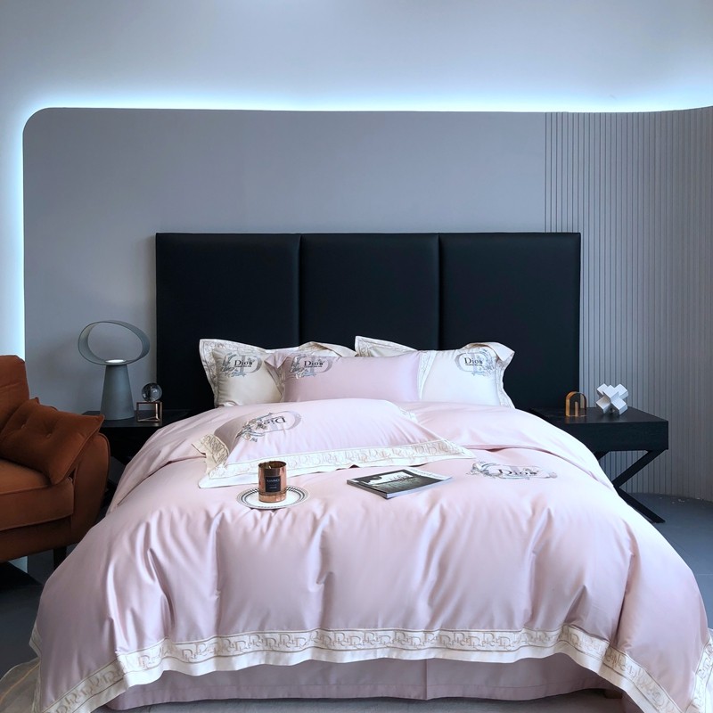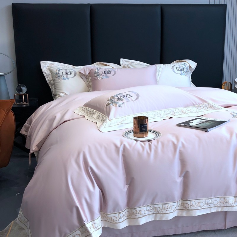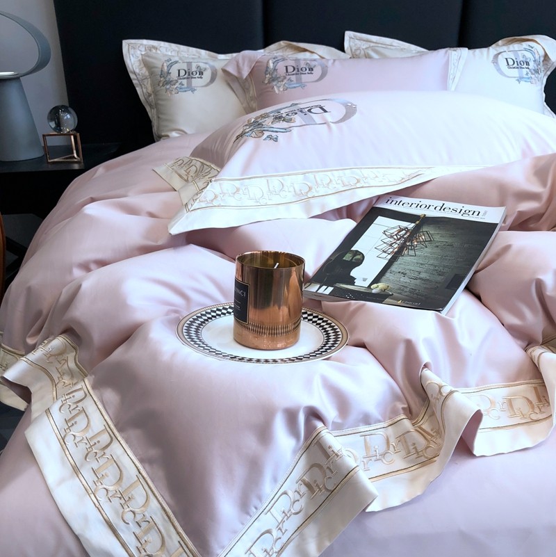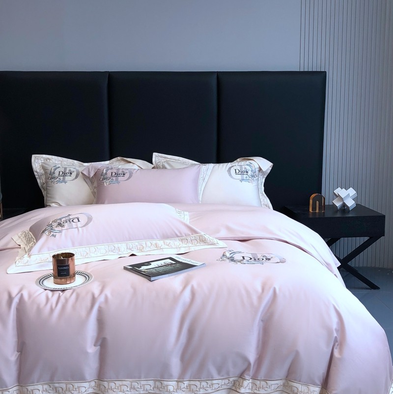 商品名称:馨蕊2022秋冬新品100支高定系列全棉四件套-蝶舞 初夏粉