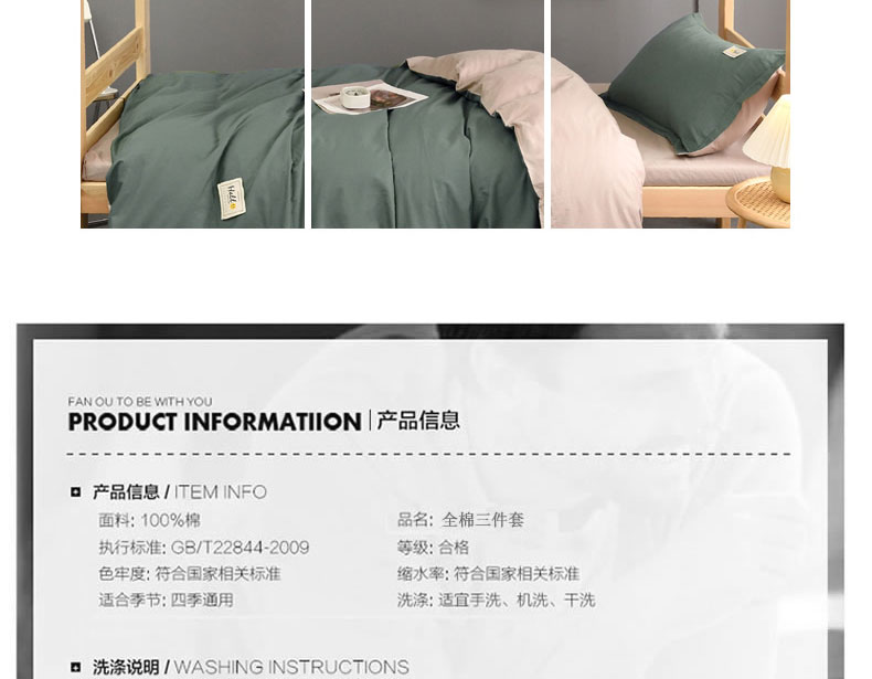 商品名称:(总)2024新款单人学生宿舍学生床三件套13372纯棉纯色全棉斜纹素色