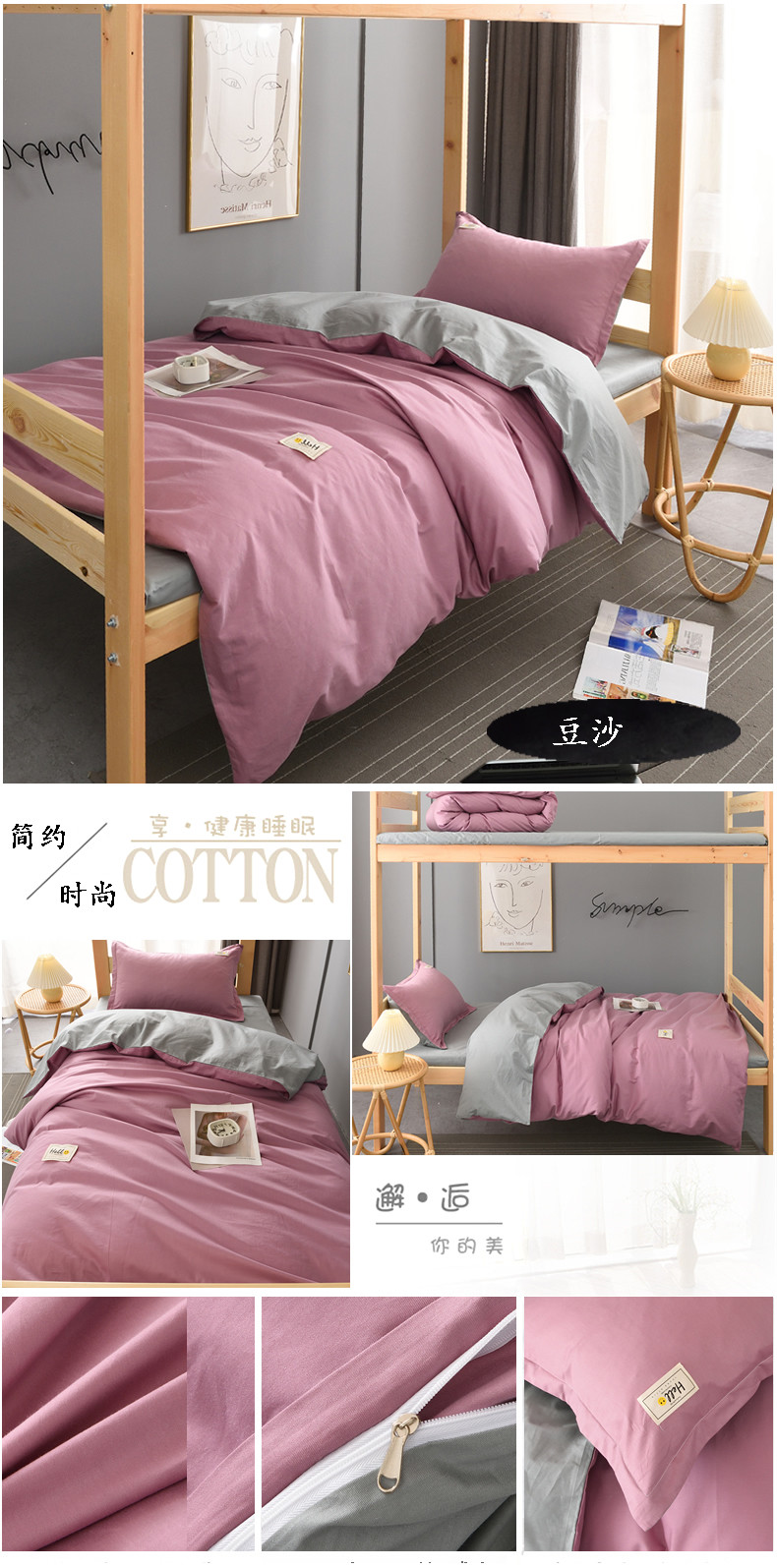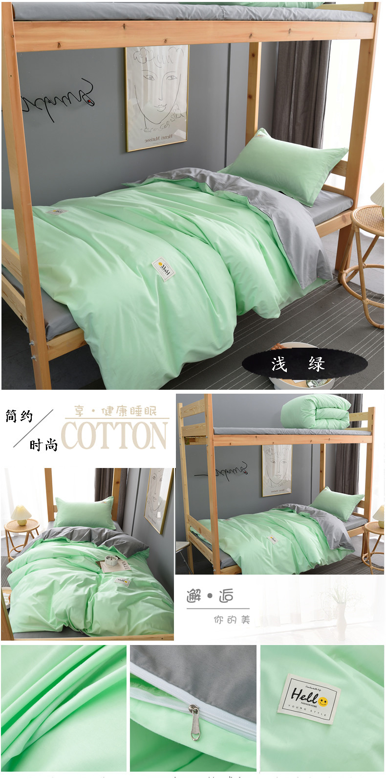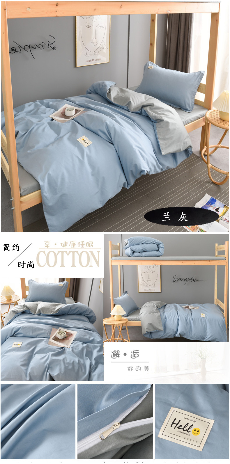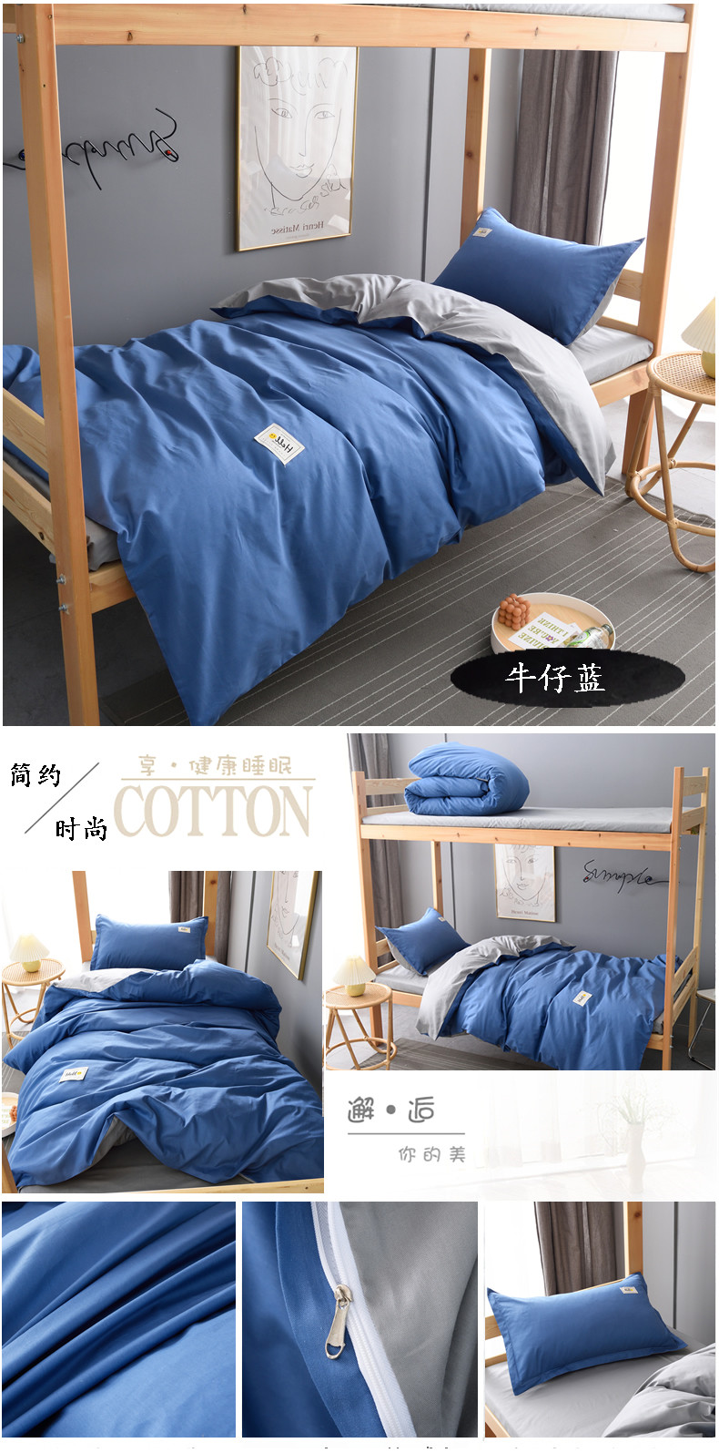 (总)2024新款单人学生宿舍学生床三件套13372纯棉纯色全棉斜纹素色