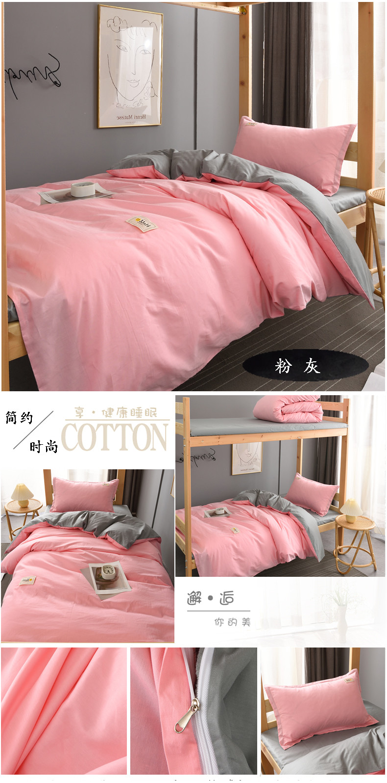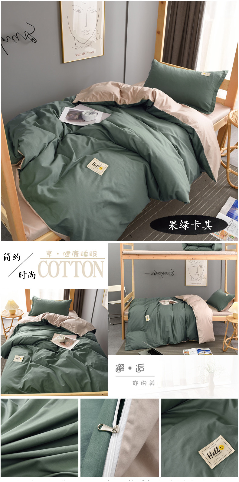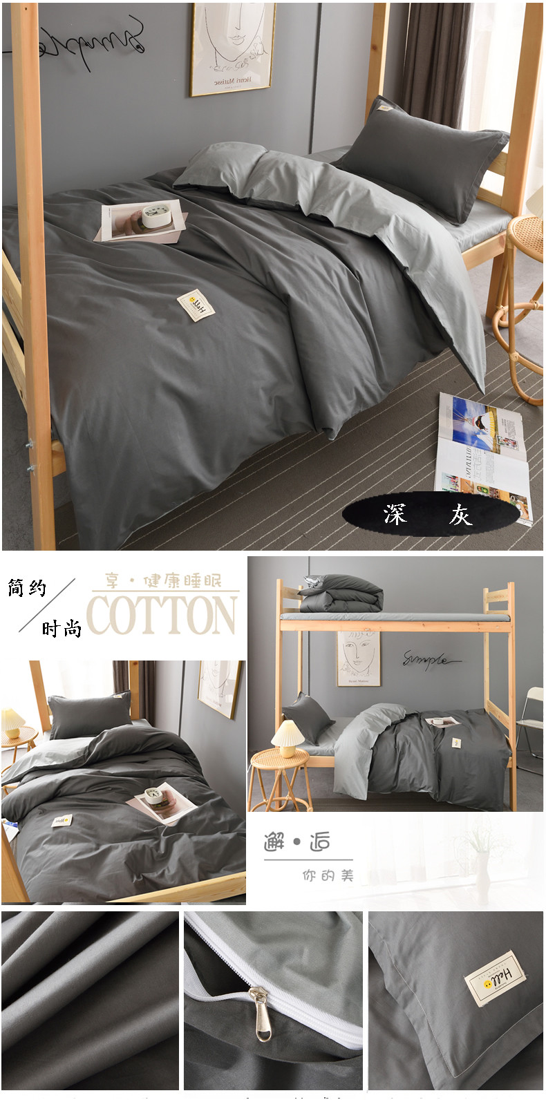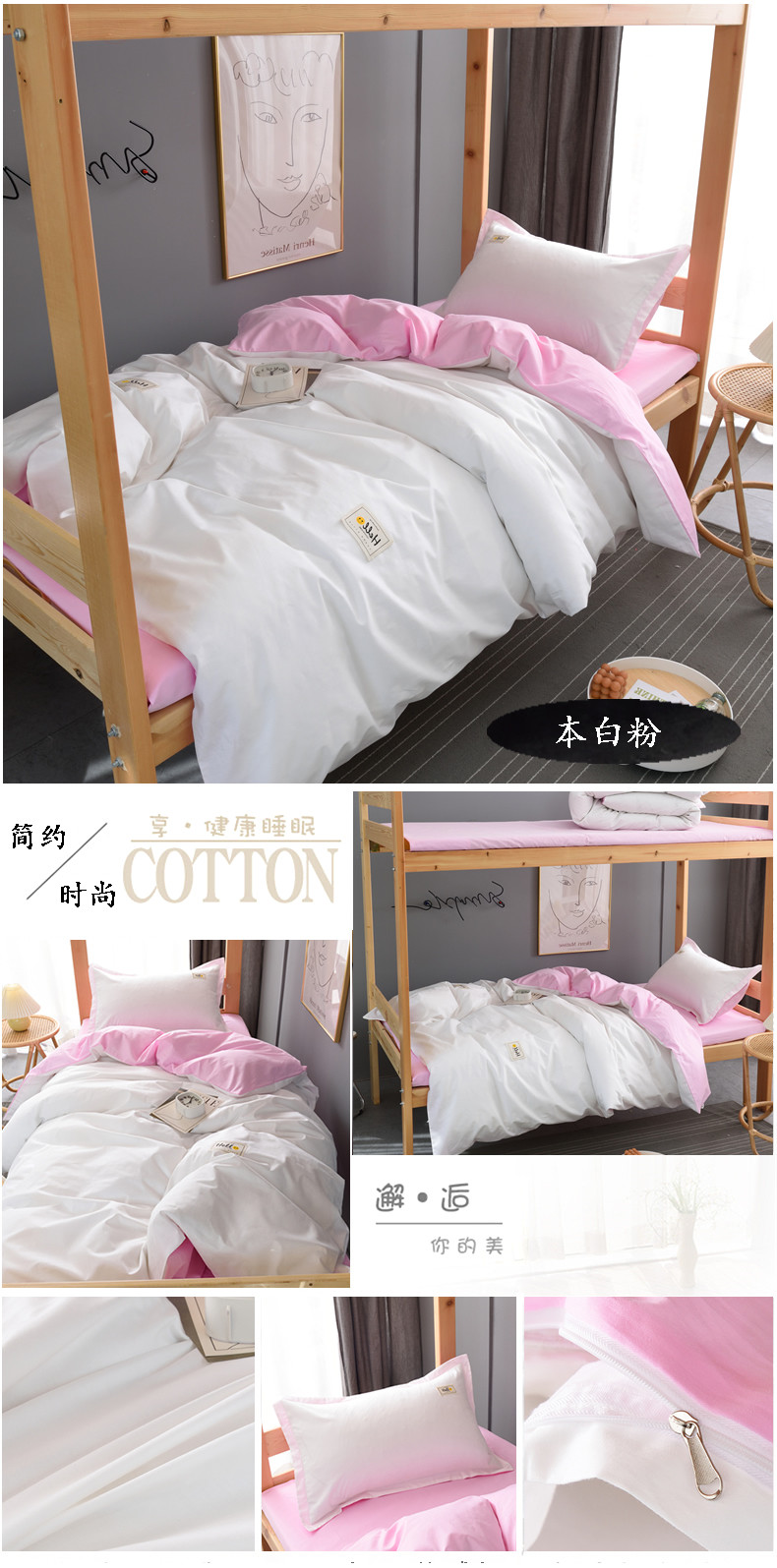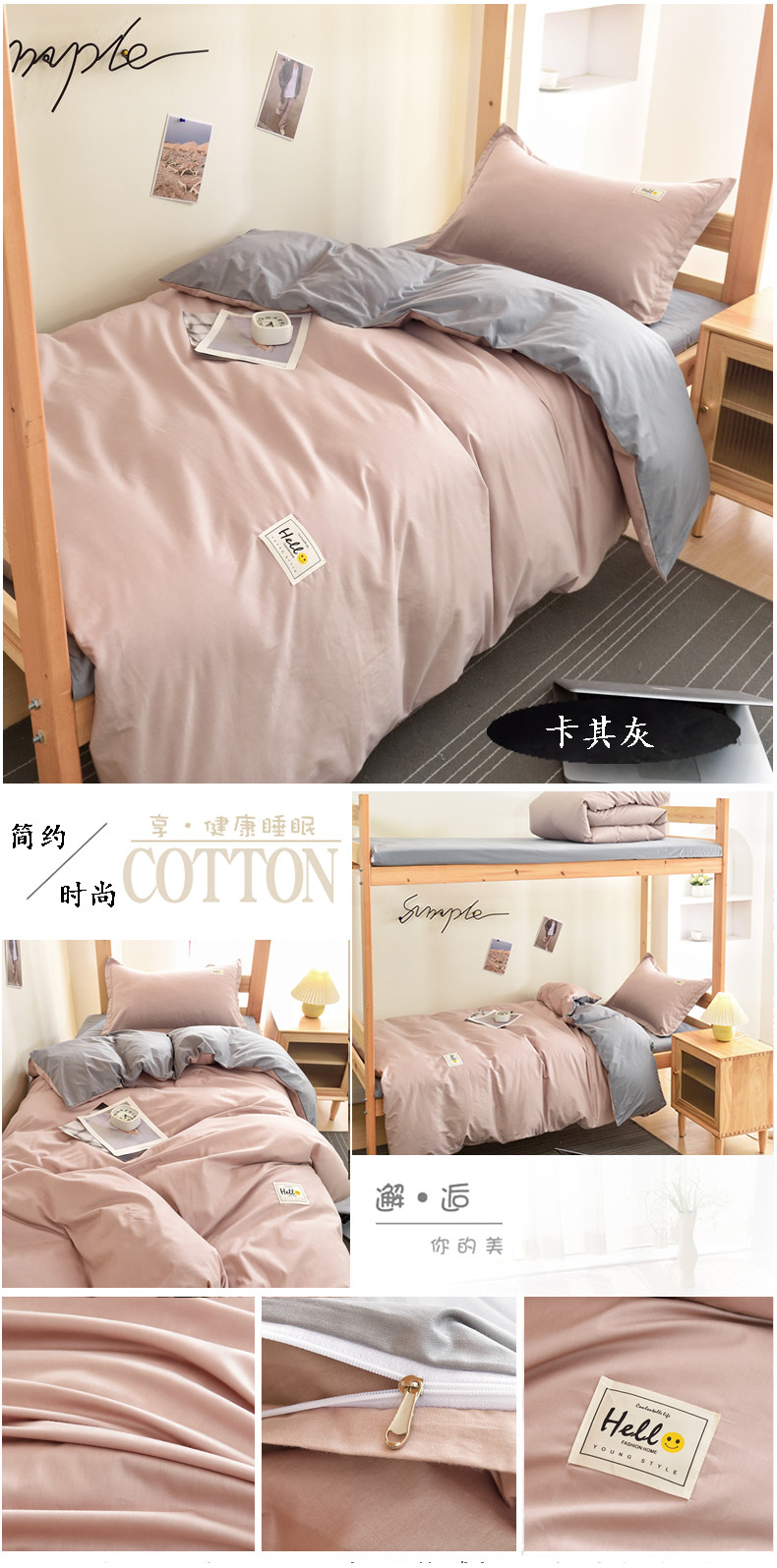(总)2024新款单人学生宿舍学生床三件套13372纯棉纯色全棉斜纹素色