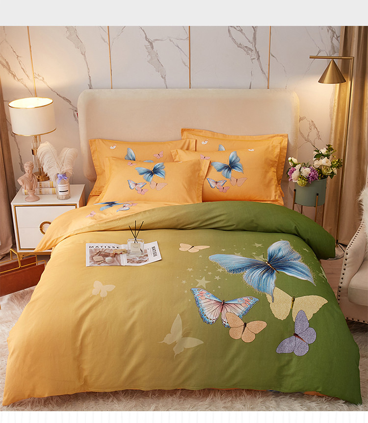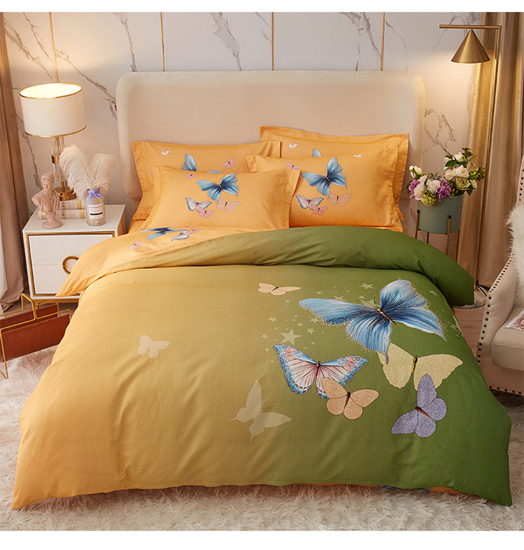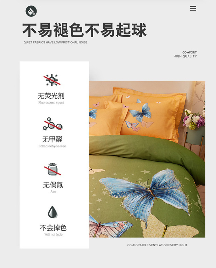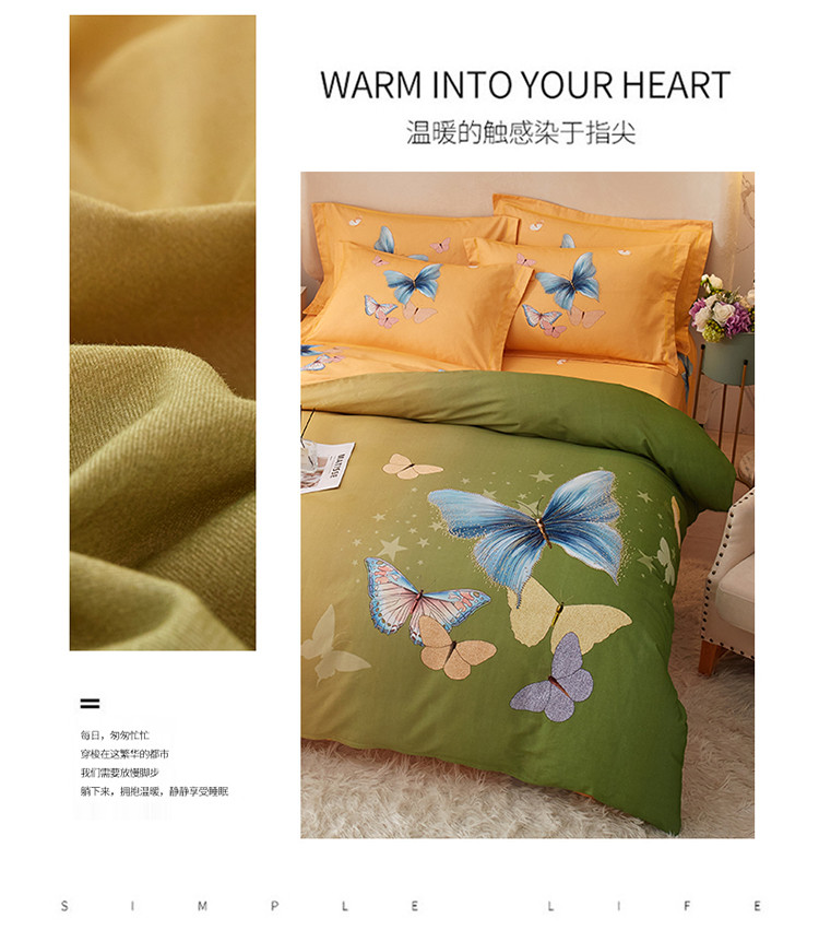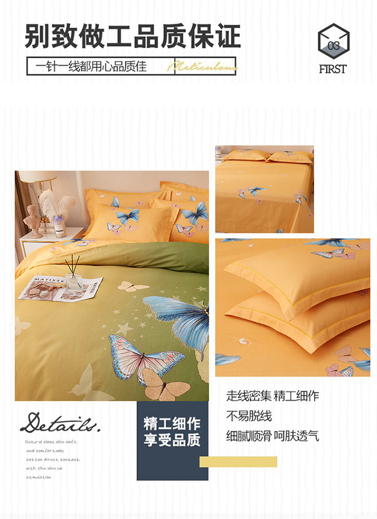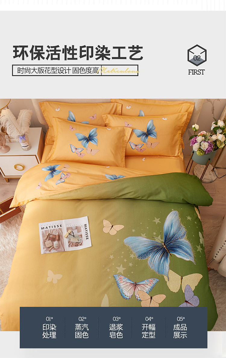 商品名称:金纱玉纺2022新款全棉生态大版磨毛四件套翩翩起舞-绿