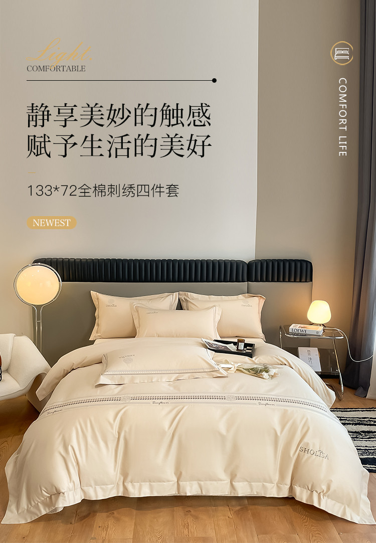 (总)理想家家纺 理想家家纺 2025新款云朵棉水洗真丝刺绣四件套,翩羽白,翩羽粉,翩羽蓝,翩羽绿,翩羽紫