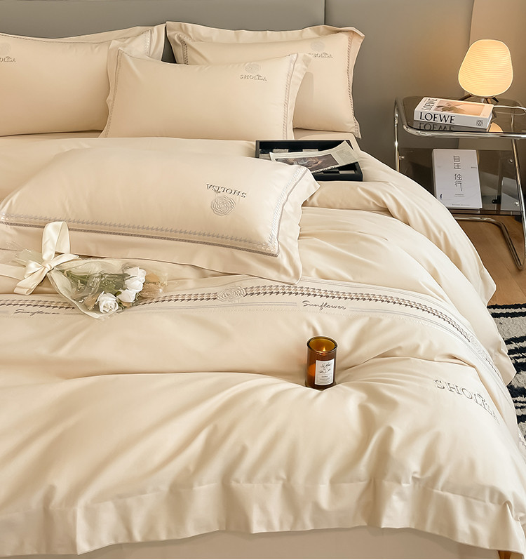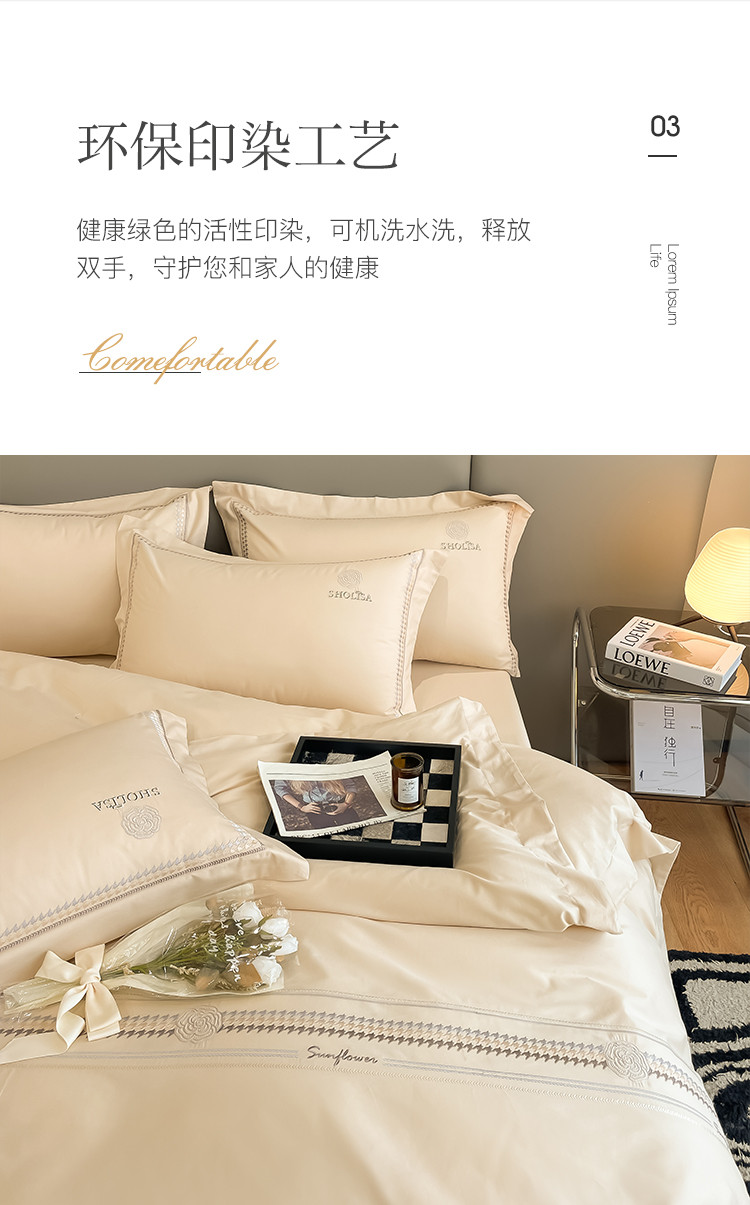 (总)理想家家纺 2025新款纯棉轻奢刺绣四件套-小秘密系列场景二,小秘密 粉,小秘密 黄,小秘密 蓝