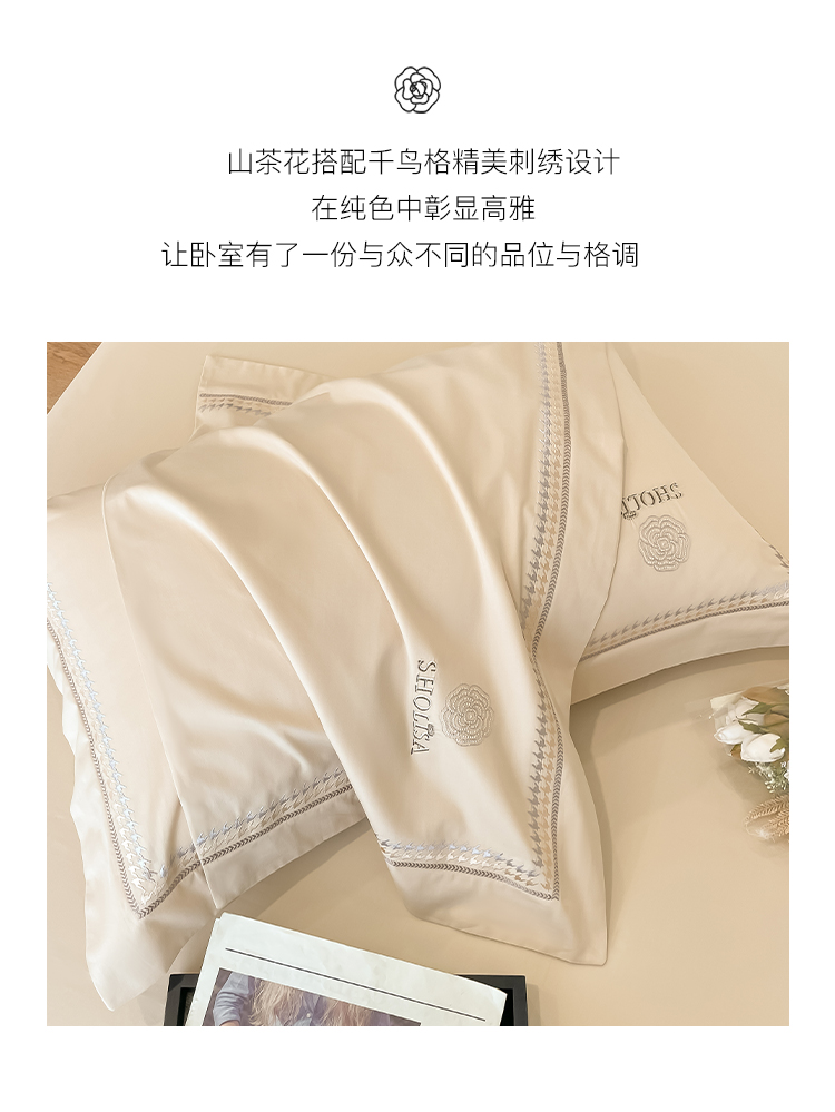 商品名称:理想家家纺 2022新款山茶花系列13372全棉刺绣四件套 山茶花-黄