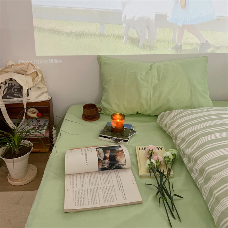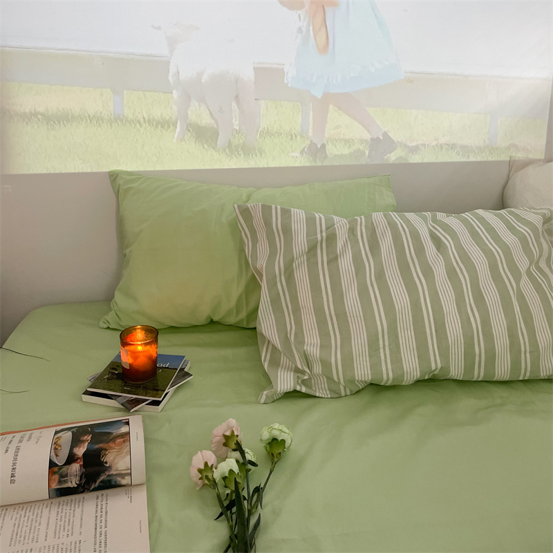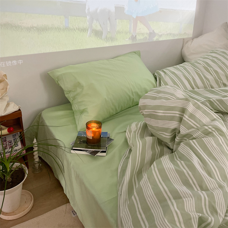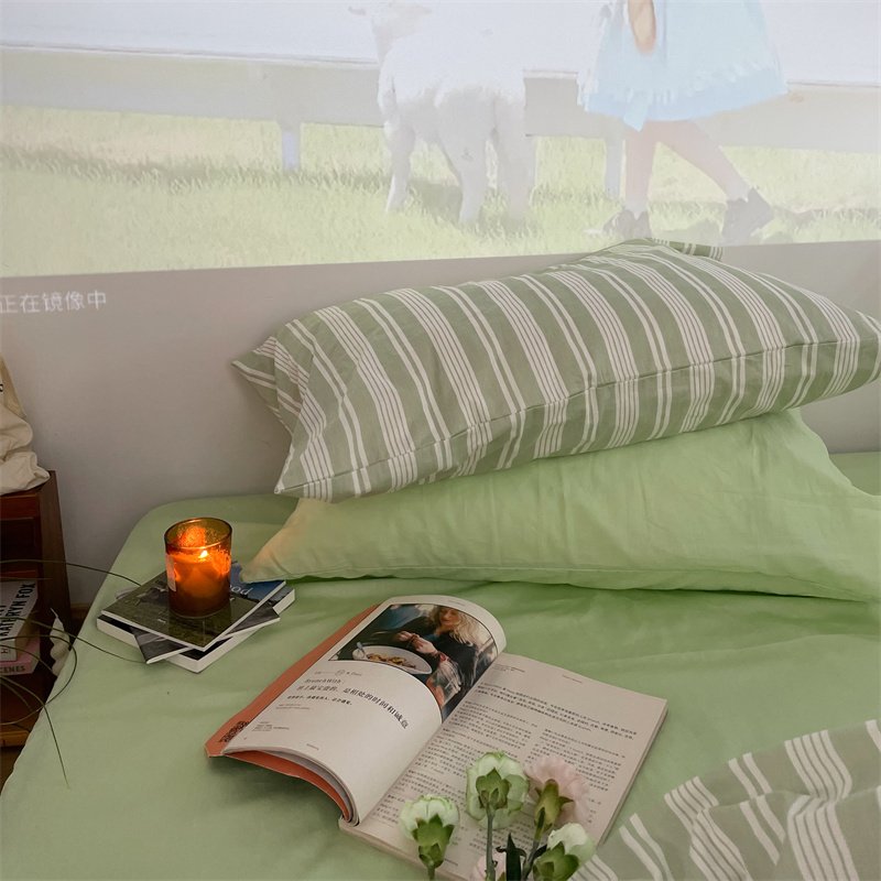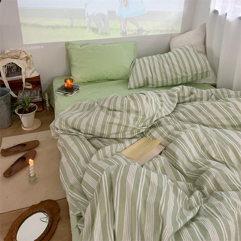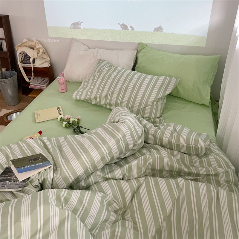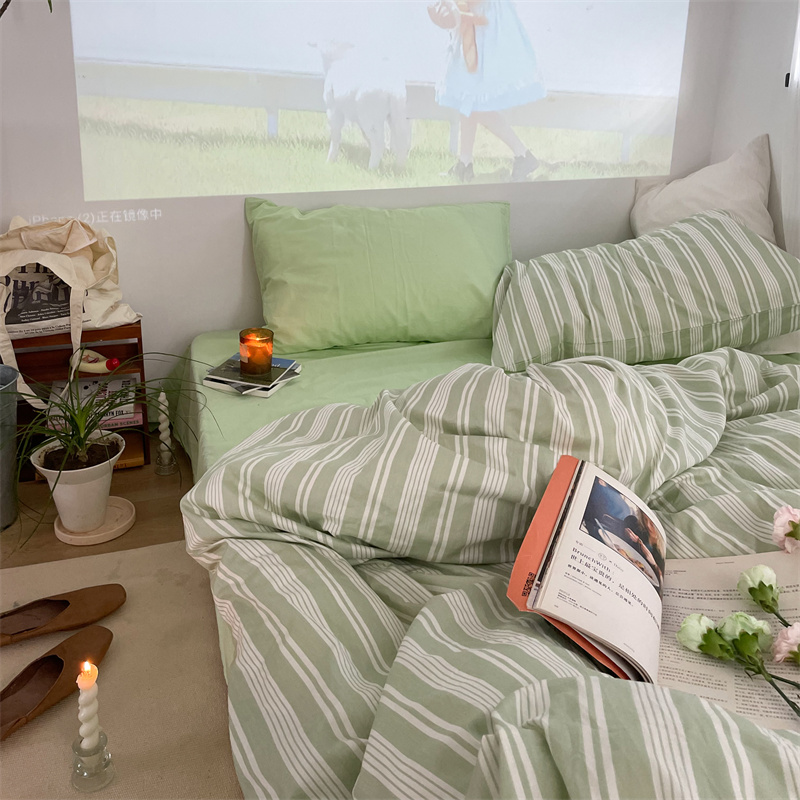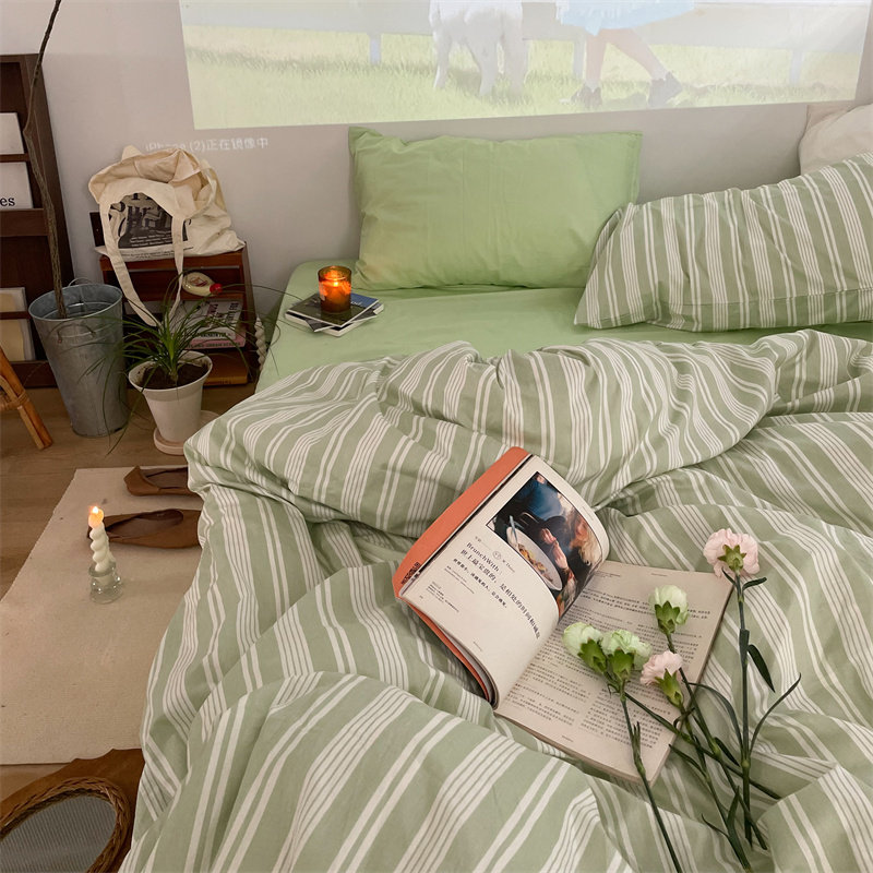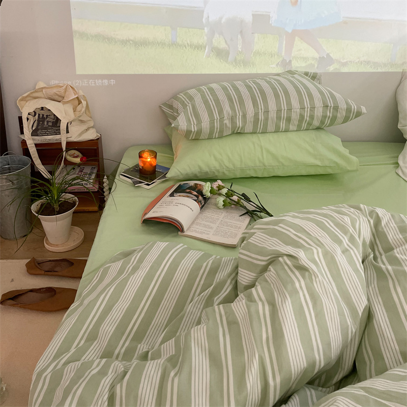 当前位置: 91家纺网 > 商品网购 > 床品套件 > 四件套 > 水洗棉四件套 > 恋恋三季 2024新款ins韩国粉色复古条纹四件套 绿皮车