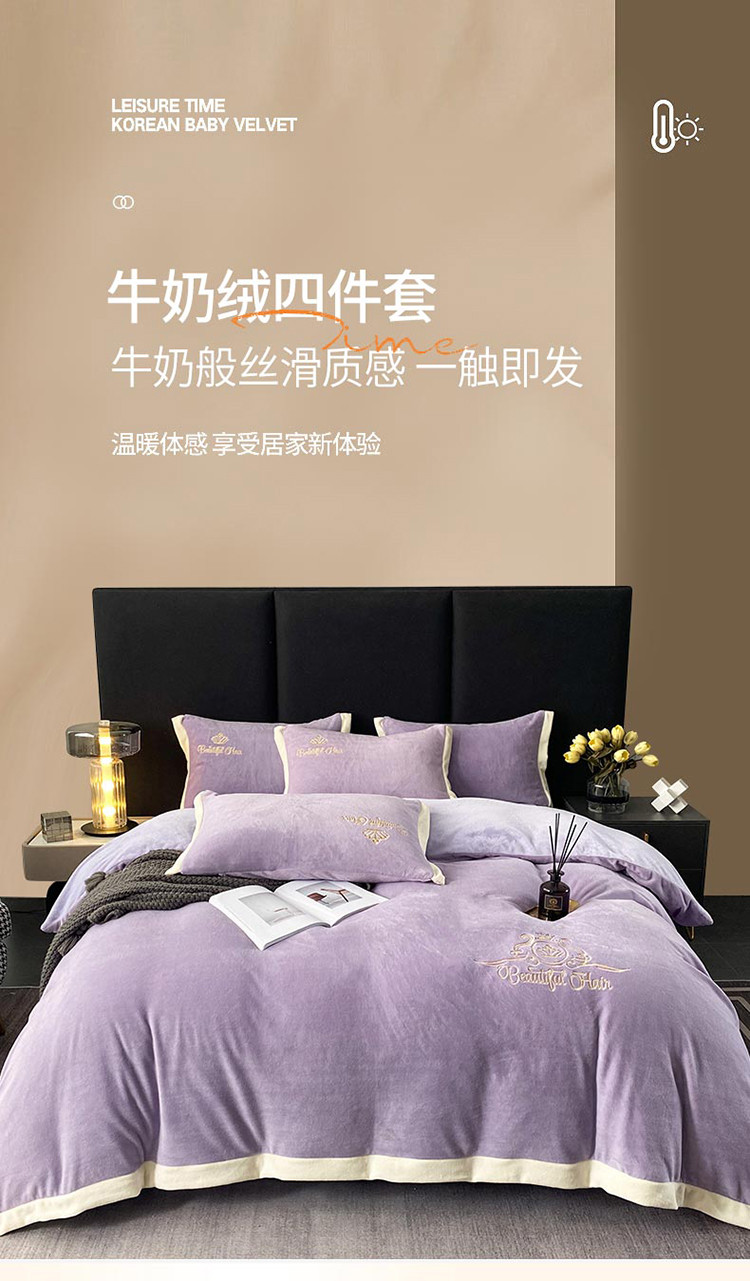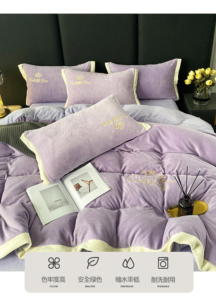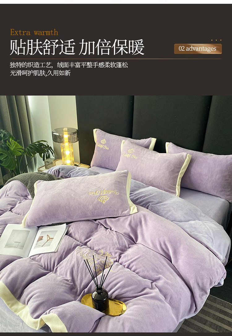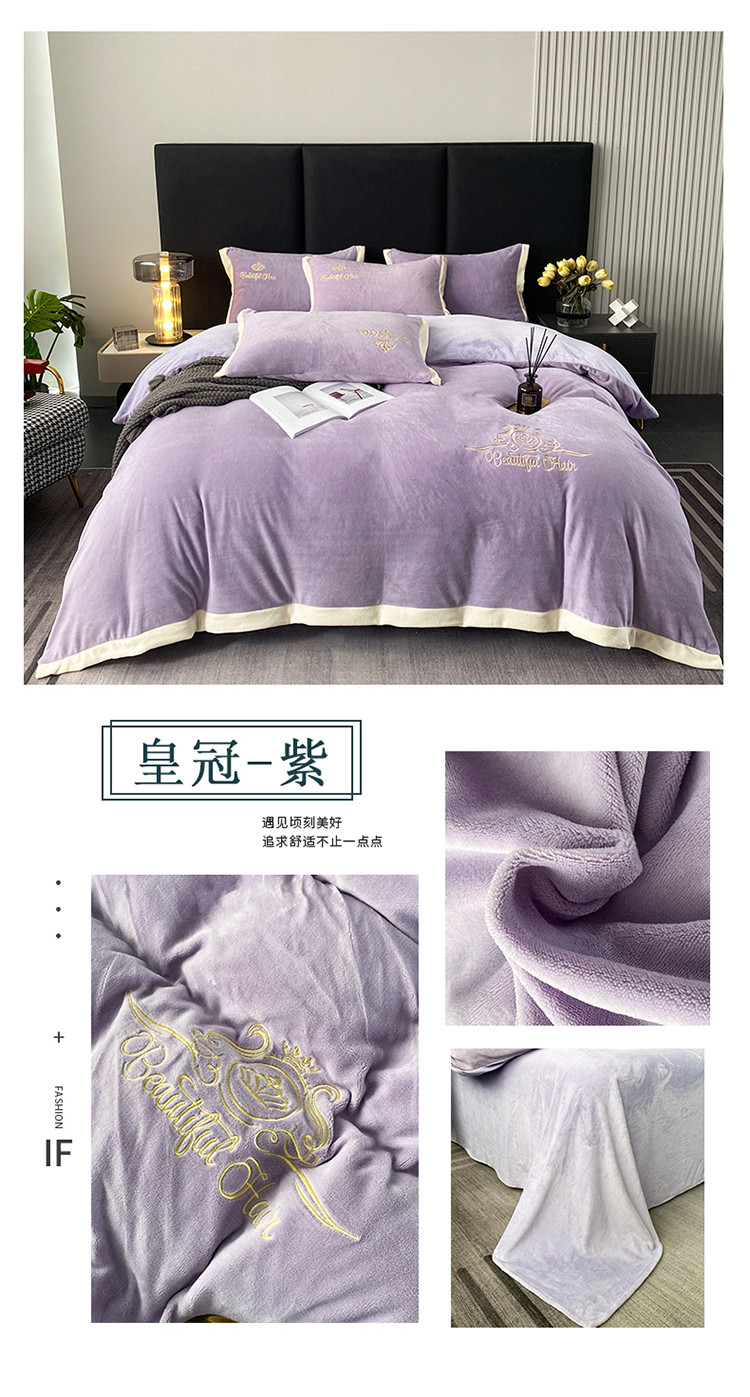 铠畅 2022年新款冬季爆款牛奶绒绒四件套 皇冠-紫