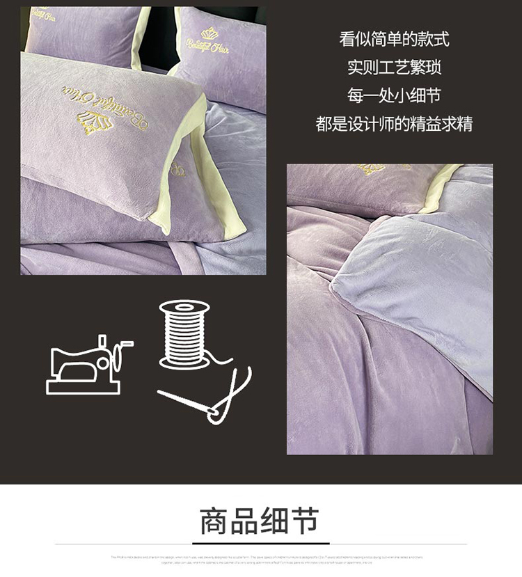 商品名称:铠畅 2022年新款冬季爆款牛奶绒绒四件套 皇冠-紫