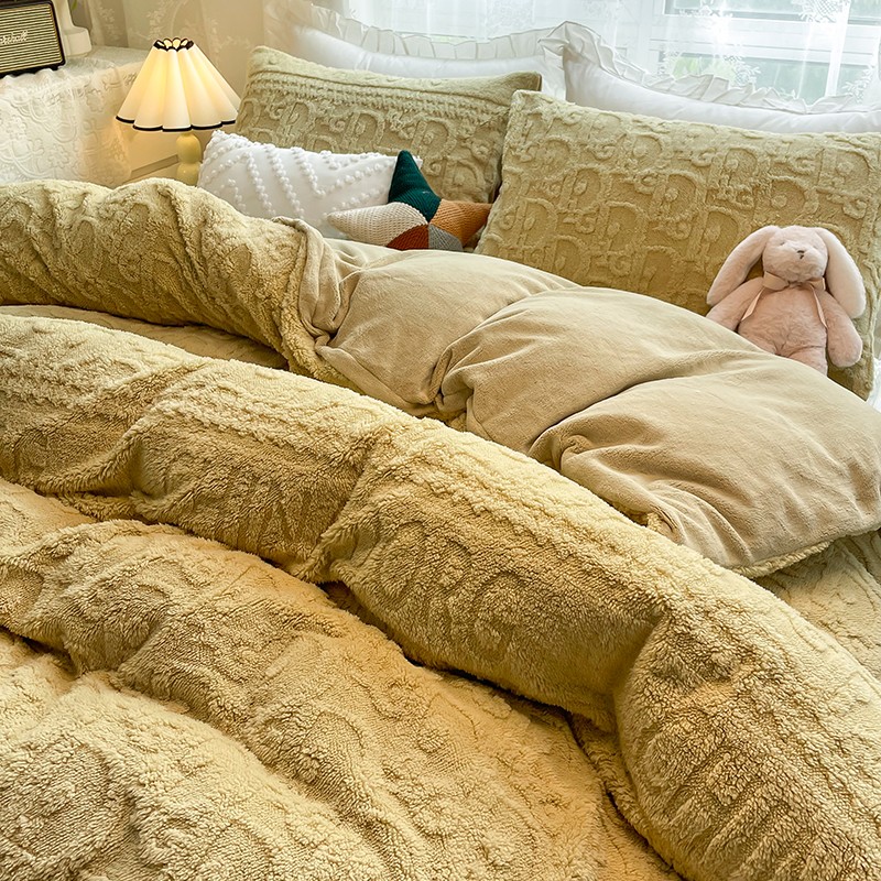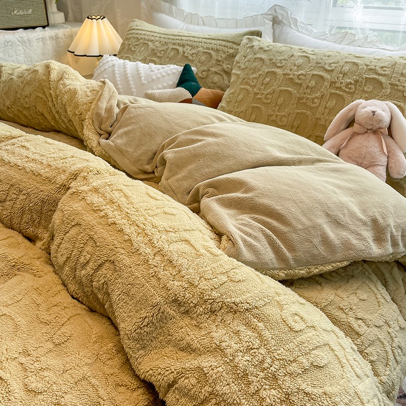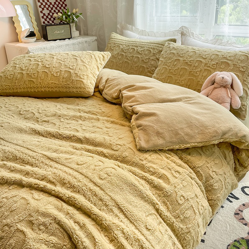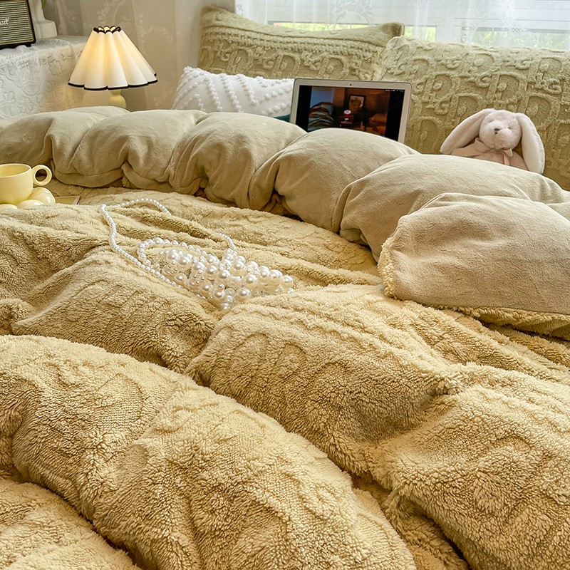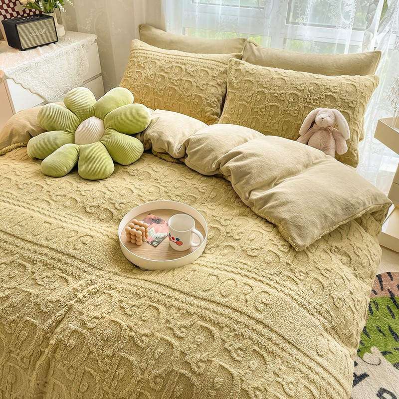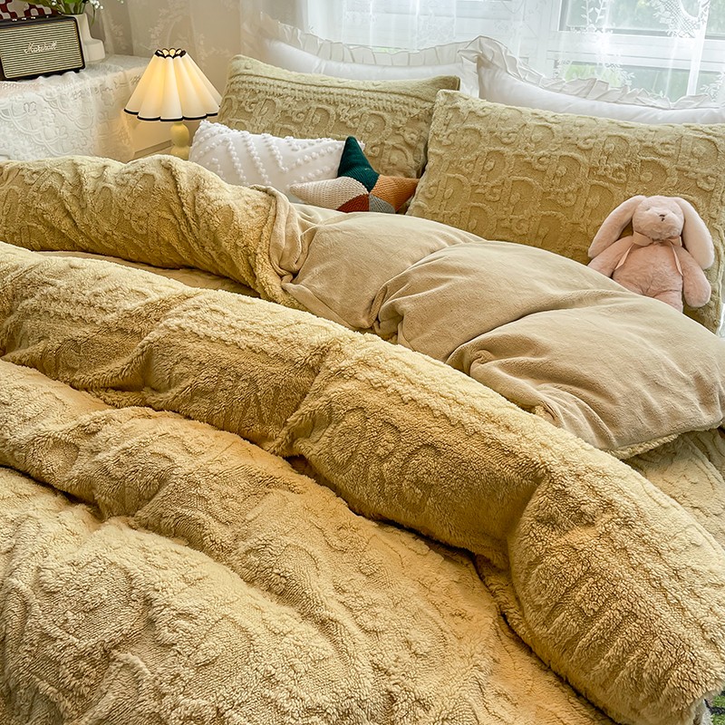 商品名称:HL原创 2022新款色织提花牛奶绒四件套 提花绒-姜黄