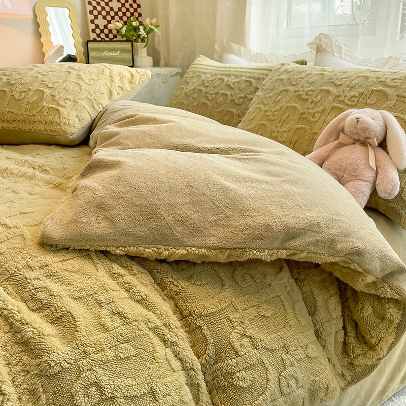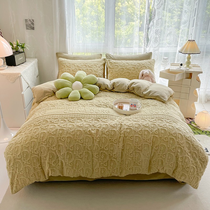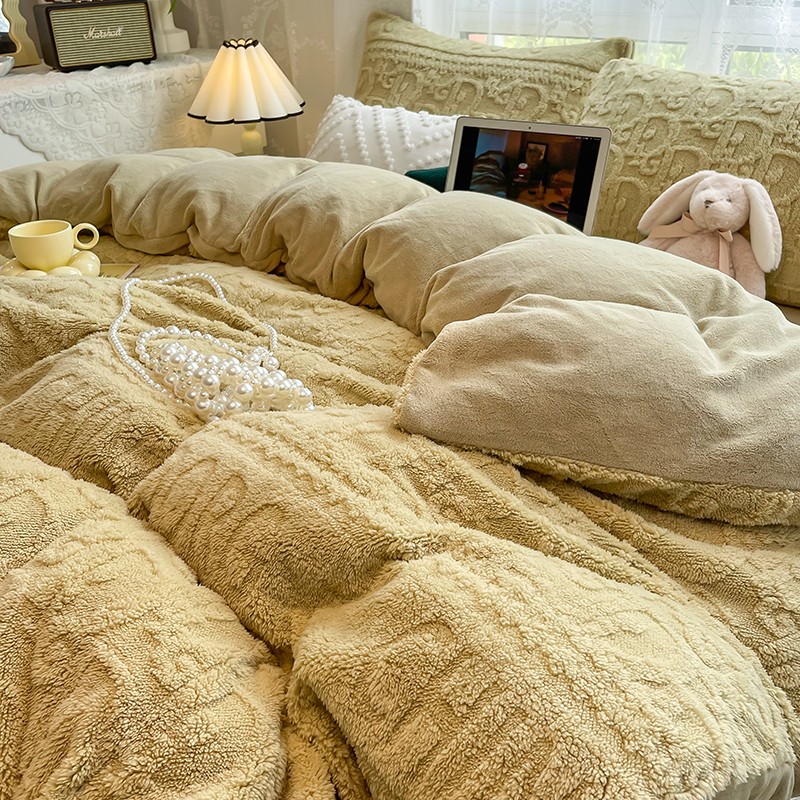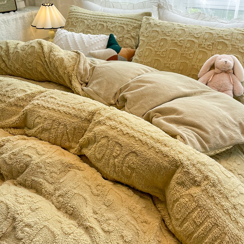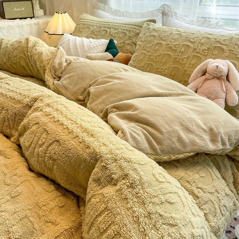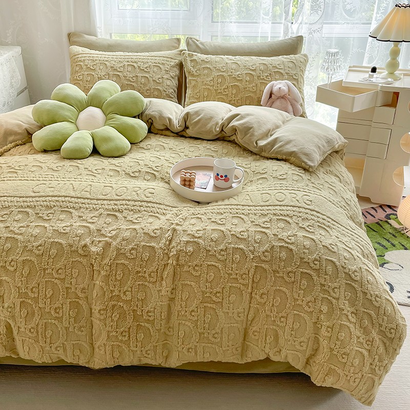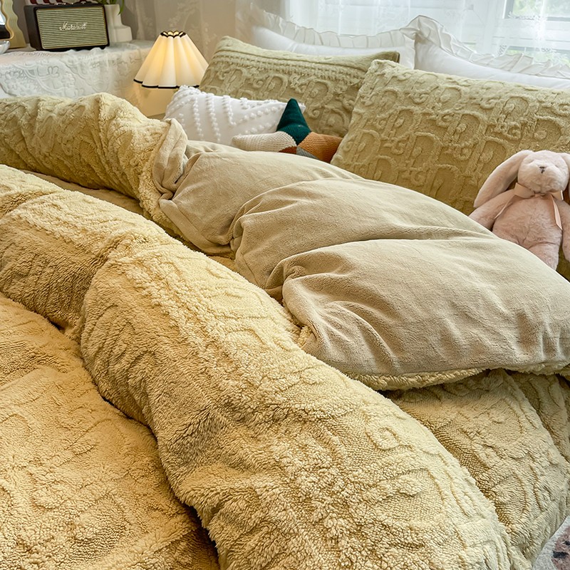 商品名称:HL原创 2022新款色织提花牛奶绒四件套 提花绒-姜黄