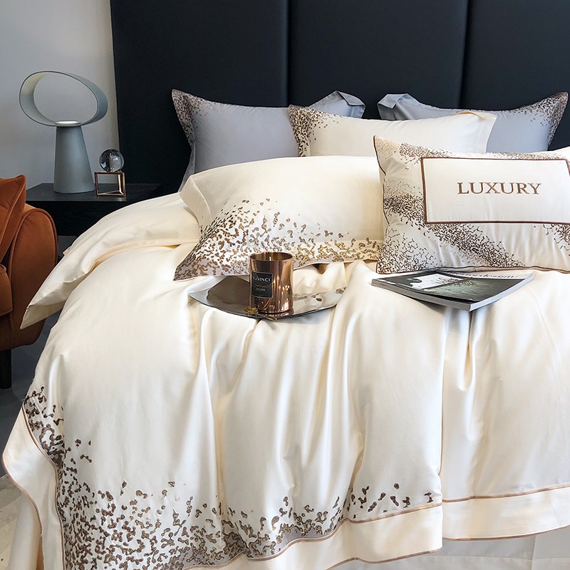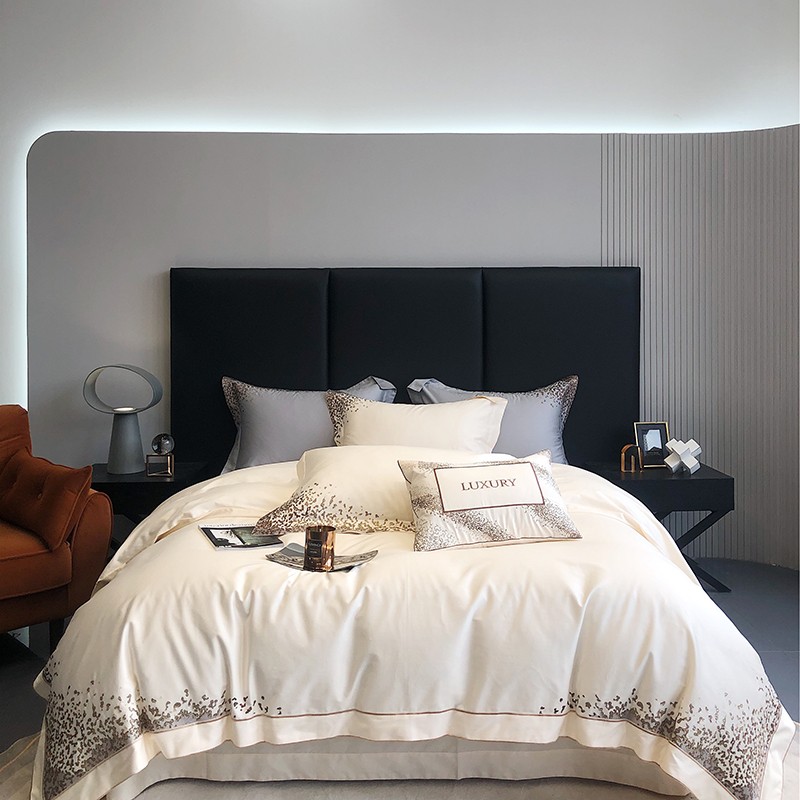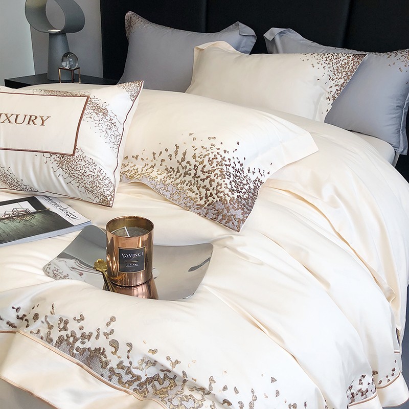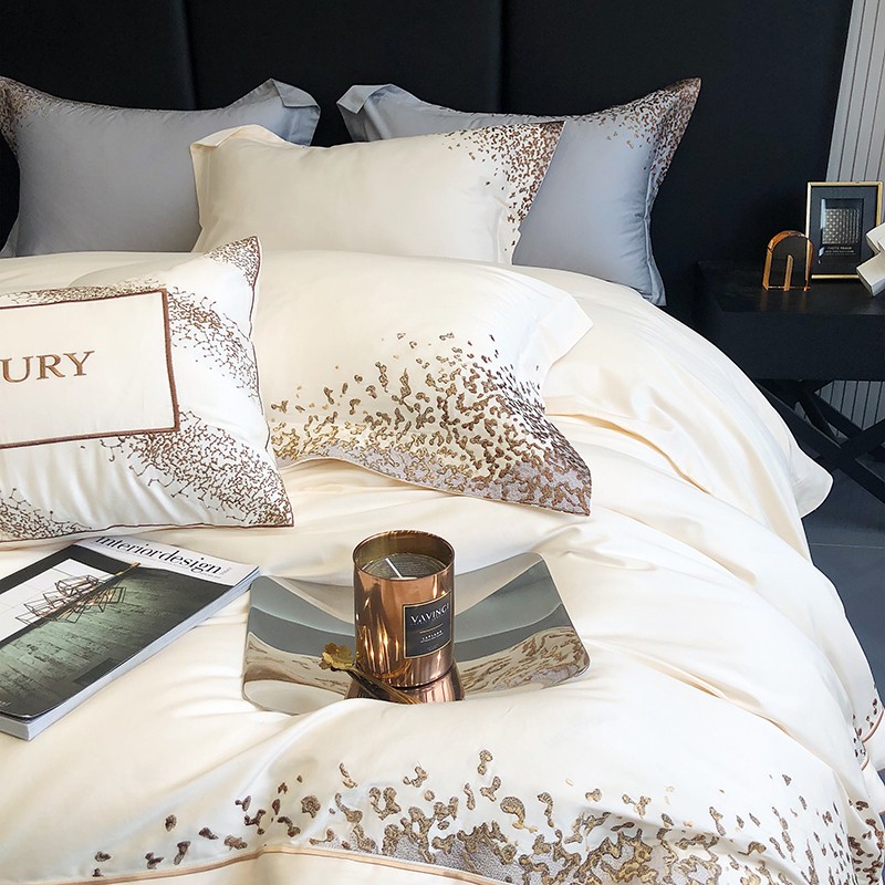 馨蕊2022新款秋冬刺绣100支高定系列四件套-缤纷 缤纷-月光白