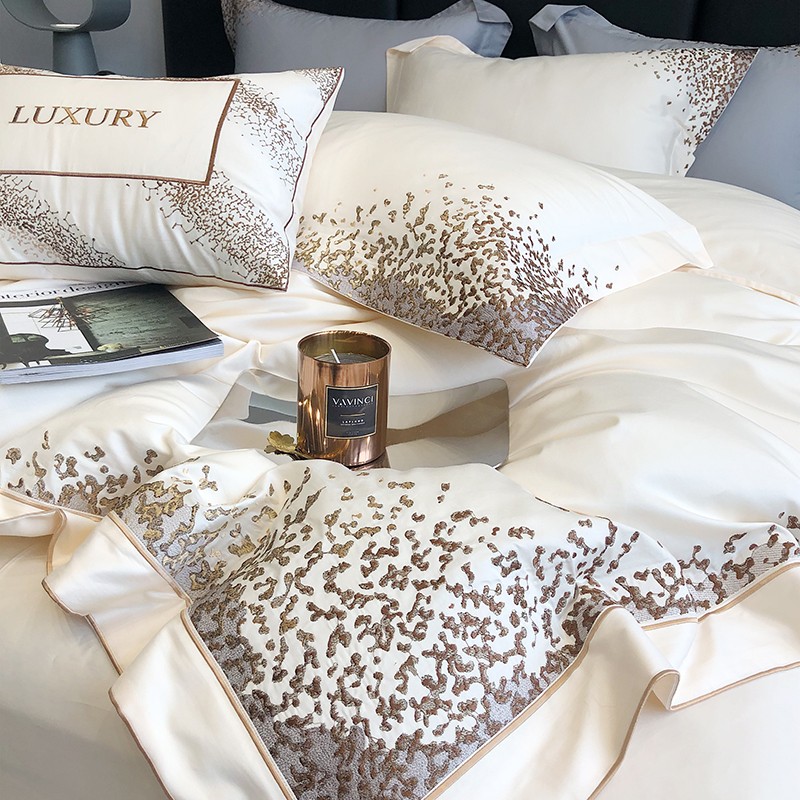 商品名称:馨蕊2022新款秋冬刺绣100支高定系列四件套-缤纷 缤纷-月光白