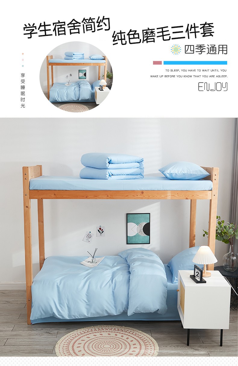 商品名称:啊雅家居 新款ins学生宿舍双拼纯色磨毛三件套 天空兰