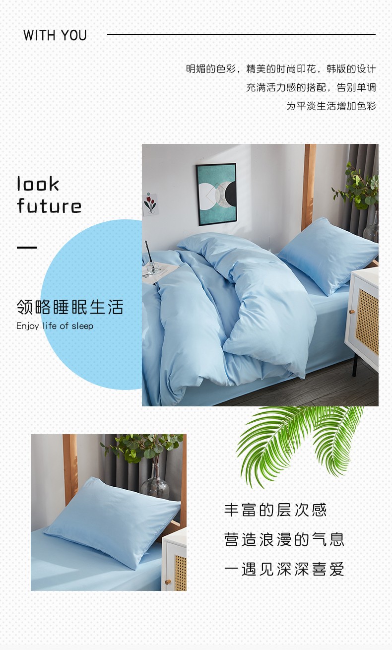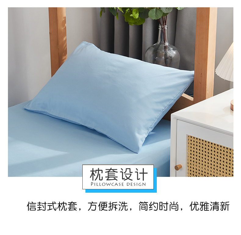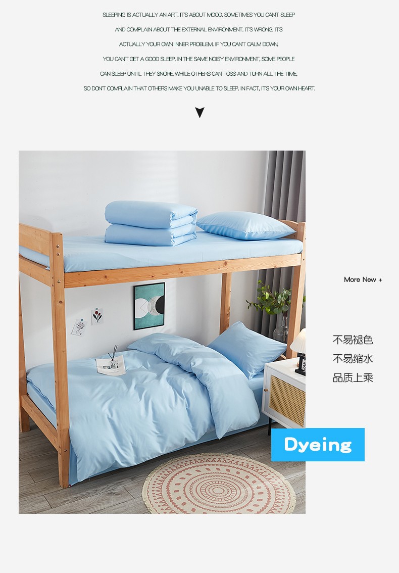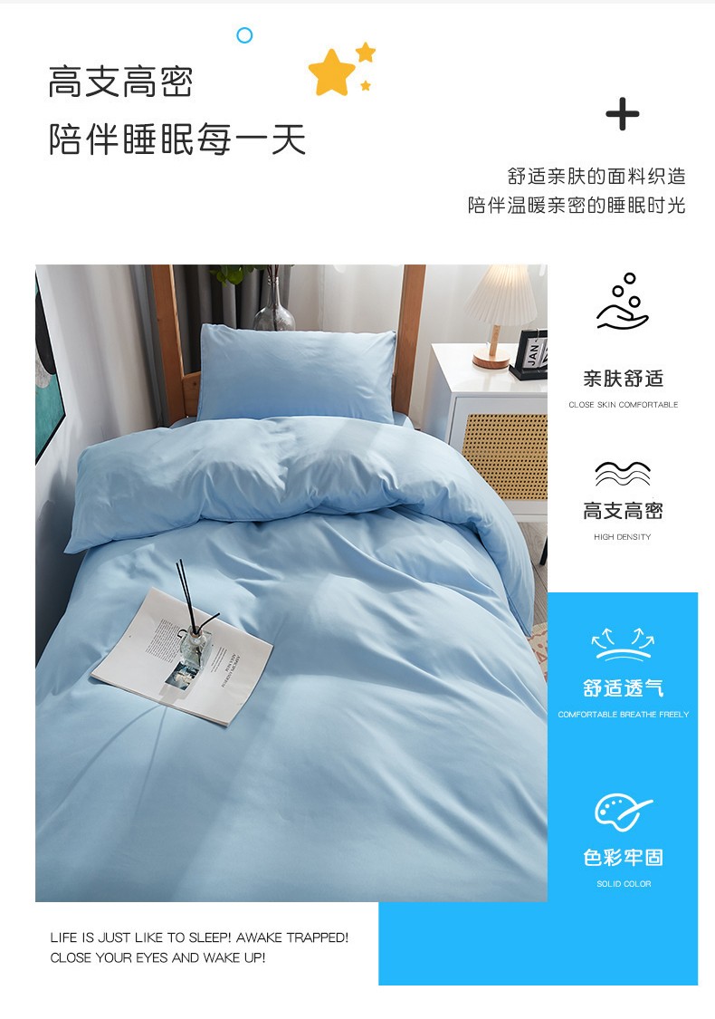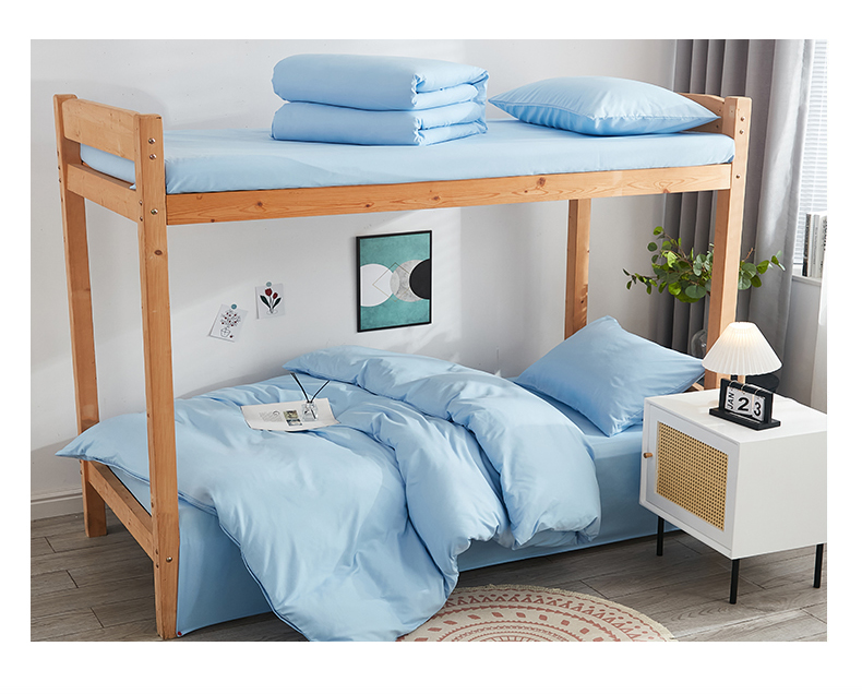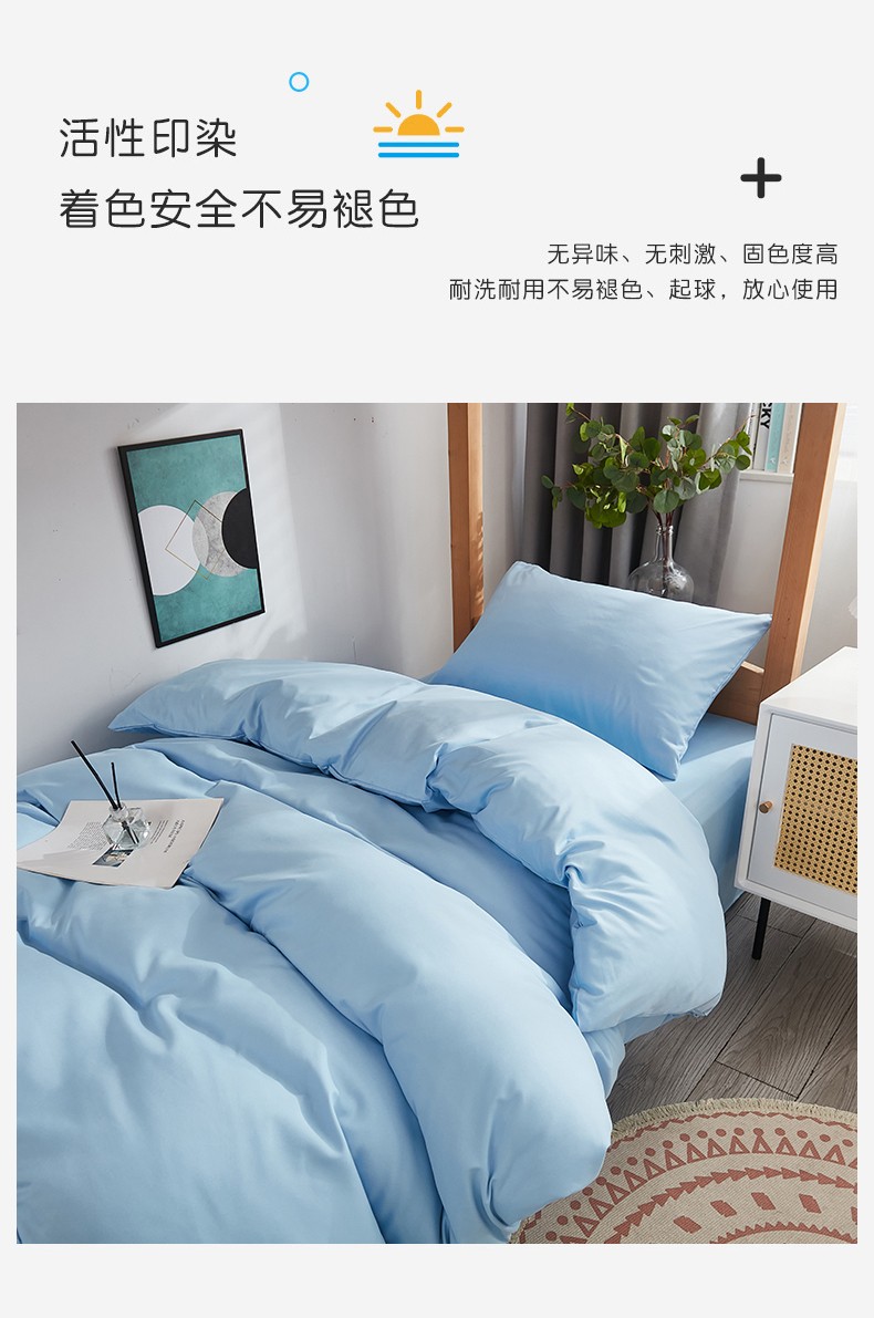啊雅家居 新款ins学生宿舍双拼纯色磨毛三件套 天空兰