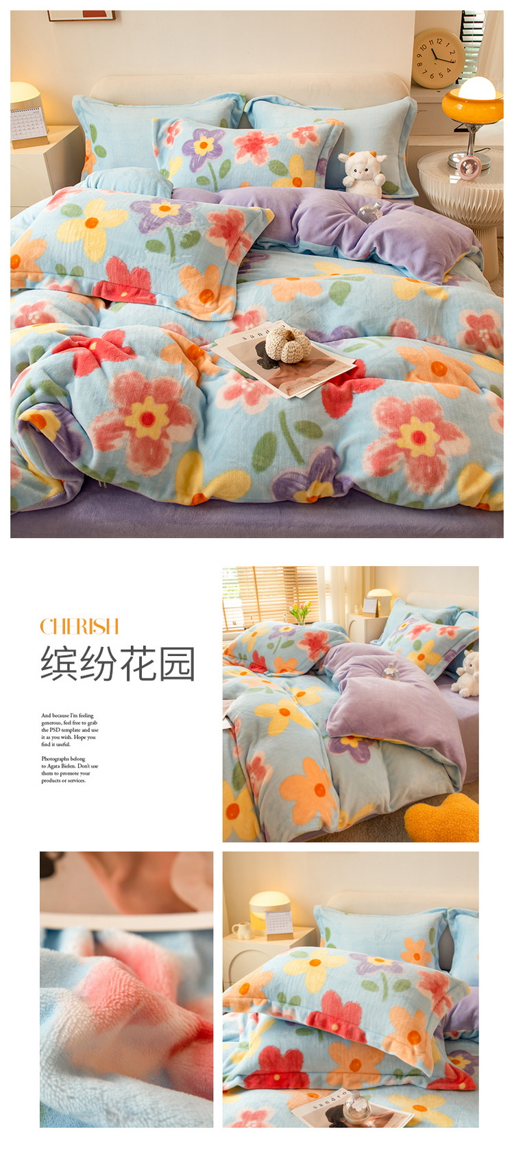 (总)丝羽坊 2022专版花型 直播供货双面牛奶绒印花四件套