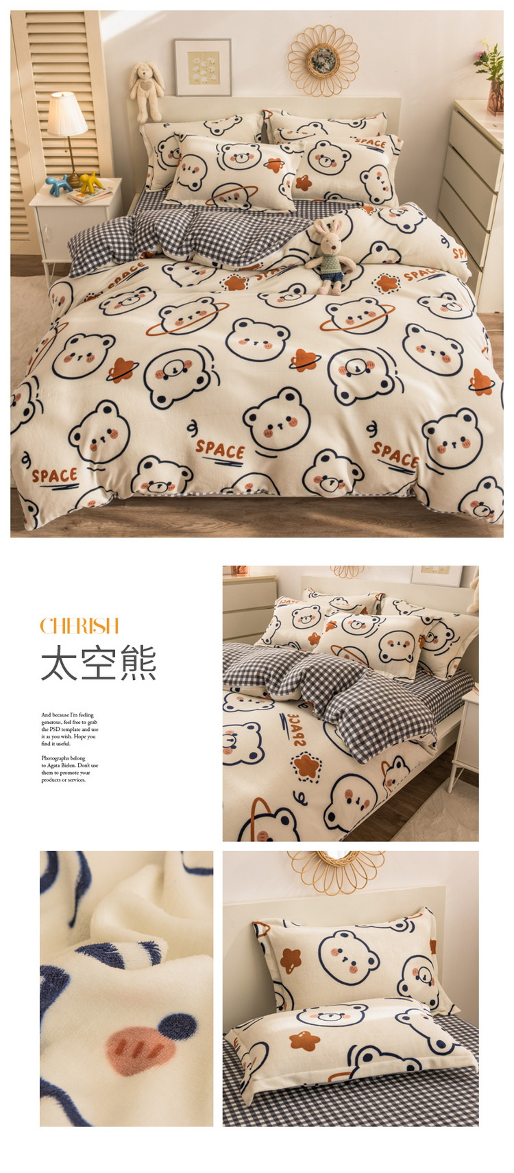 (总)丝羽坊 2025新款A类潮款加厚牛奶绒四件套,软萌宝贝,奶芙猫咪,蓝调汪汪,萌趣玩偶,灰调萌犬,抱抱熊,彩色蝴蝶结,粉粉喵窝,花裙女孩,紫色喵影