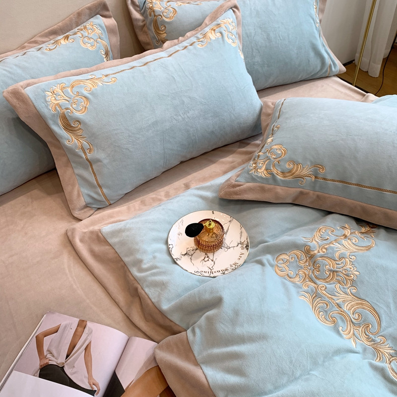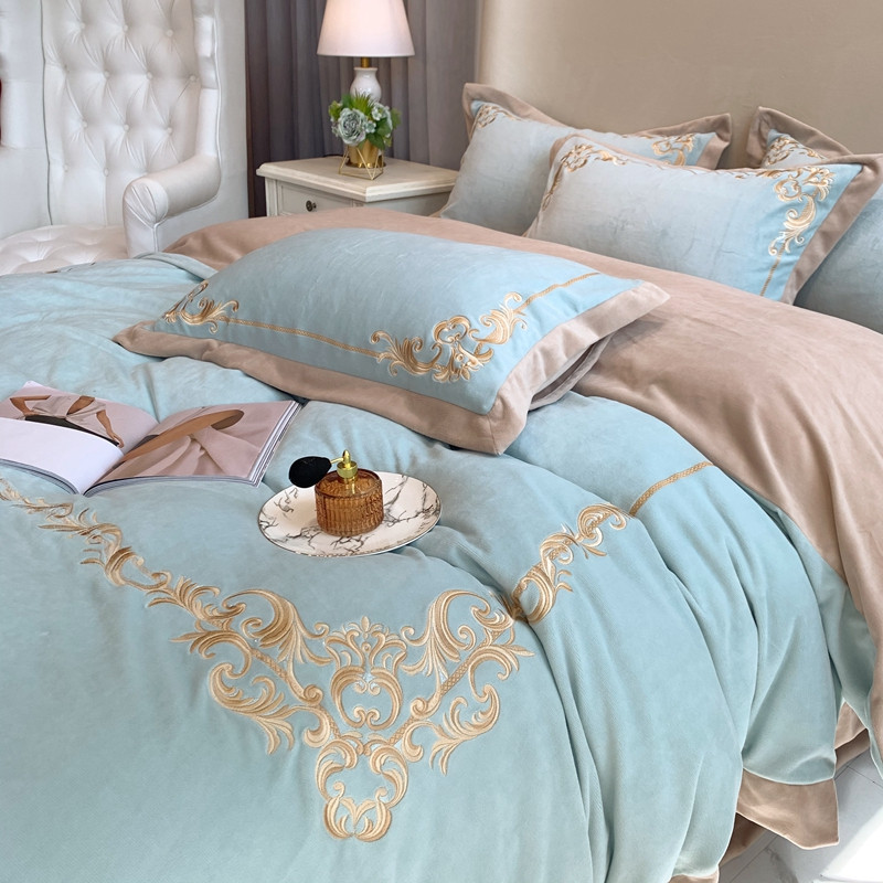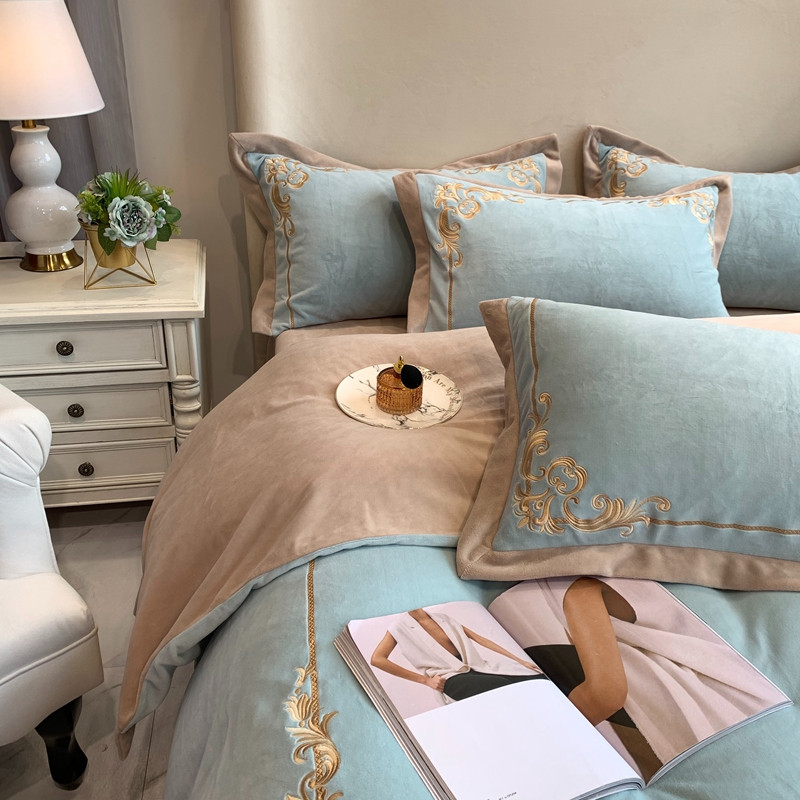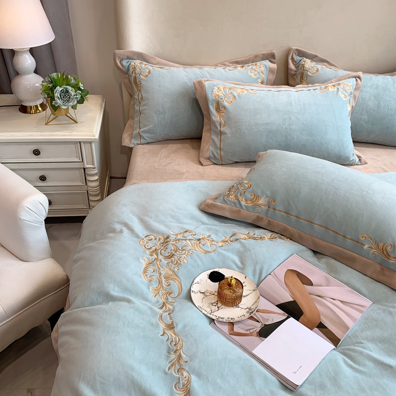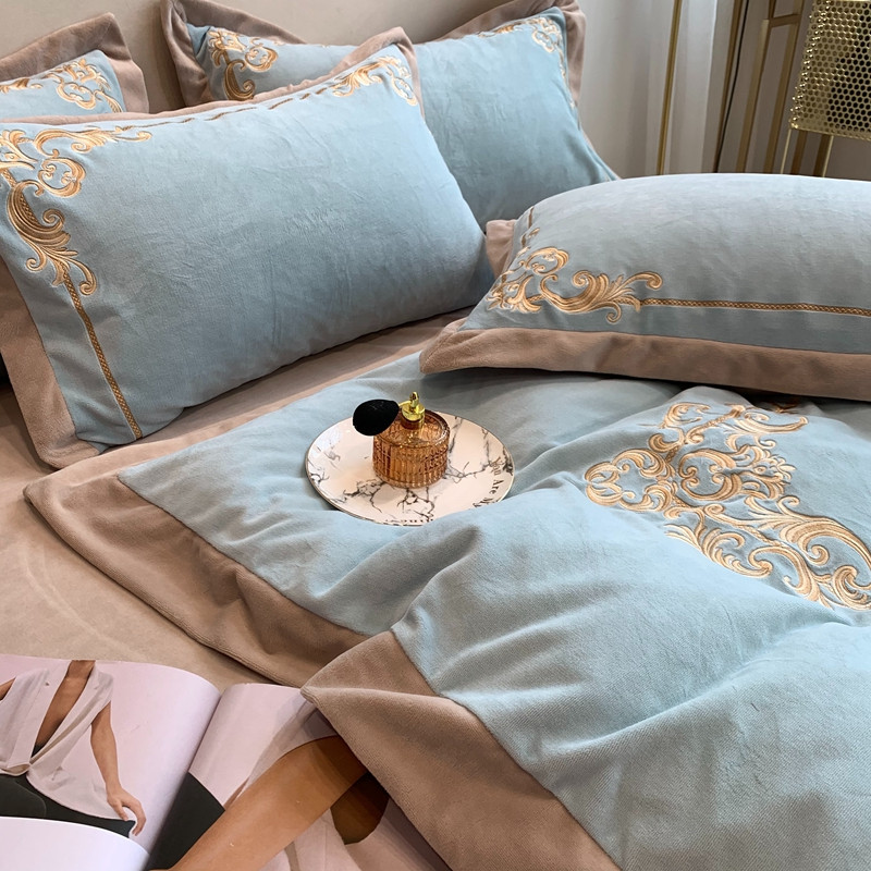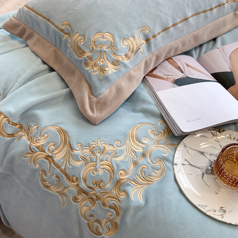商品名称:馨蕊2022新款秋冬轻奢煦暖绒系列四件套 巴比伦-湖水蓝