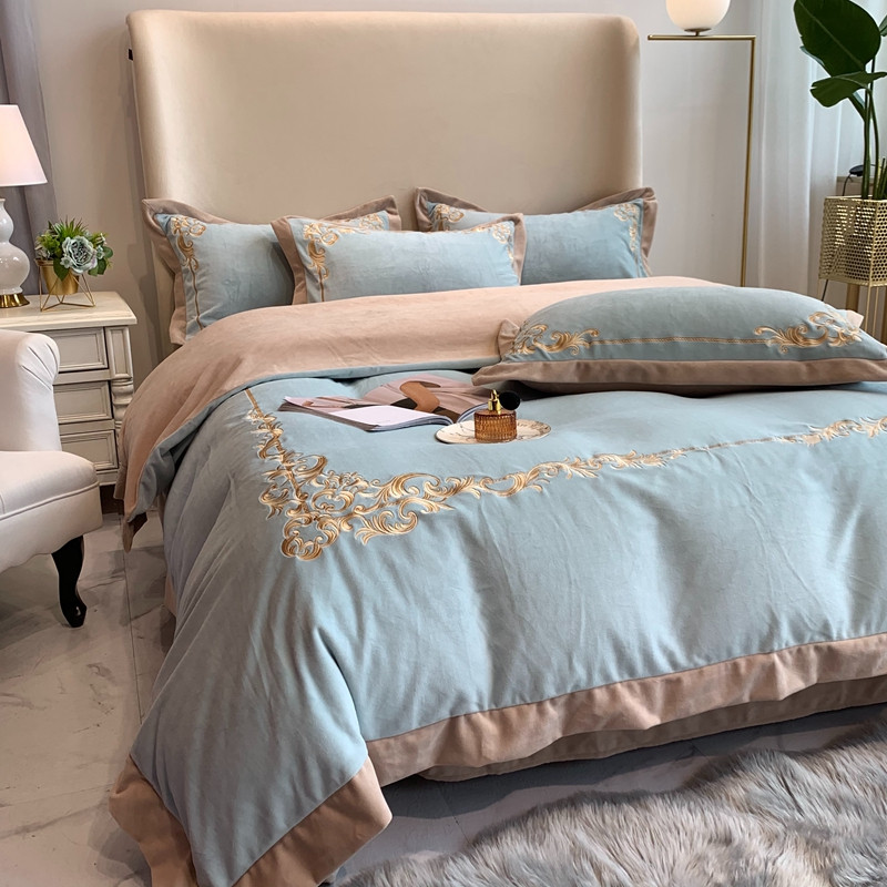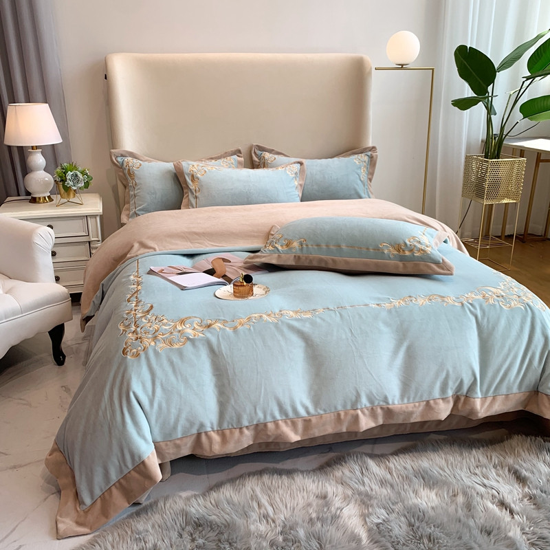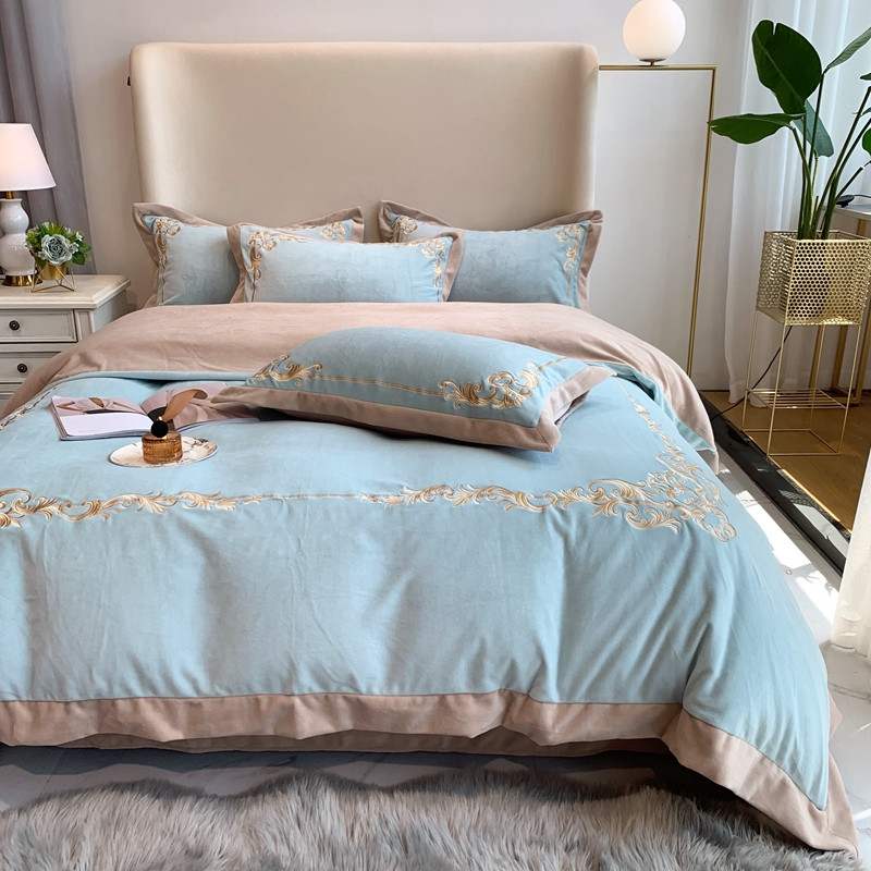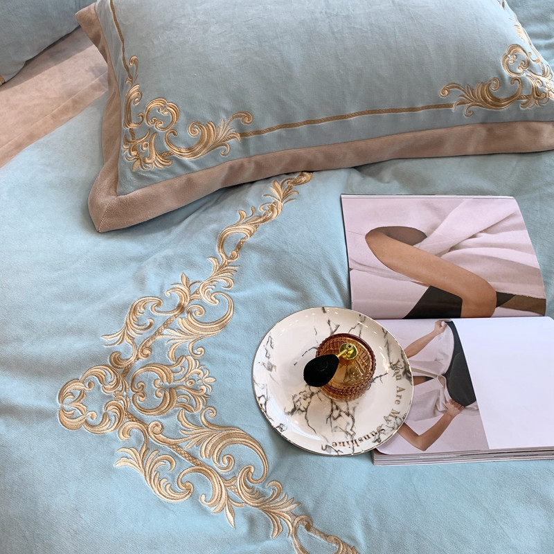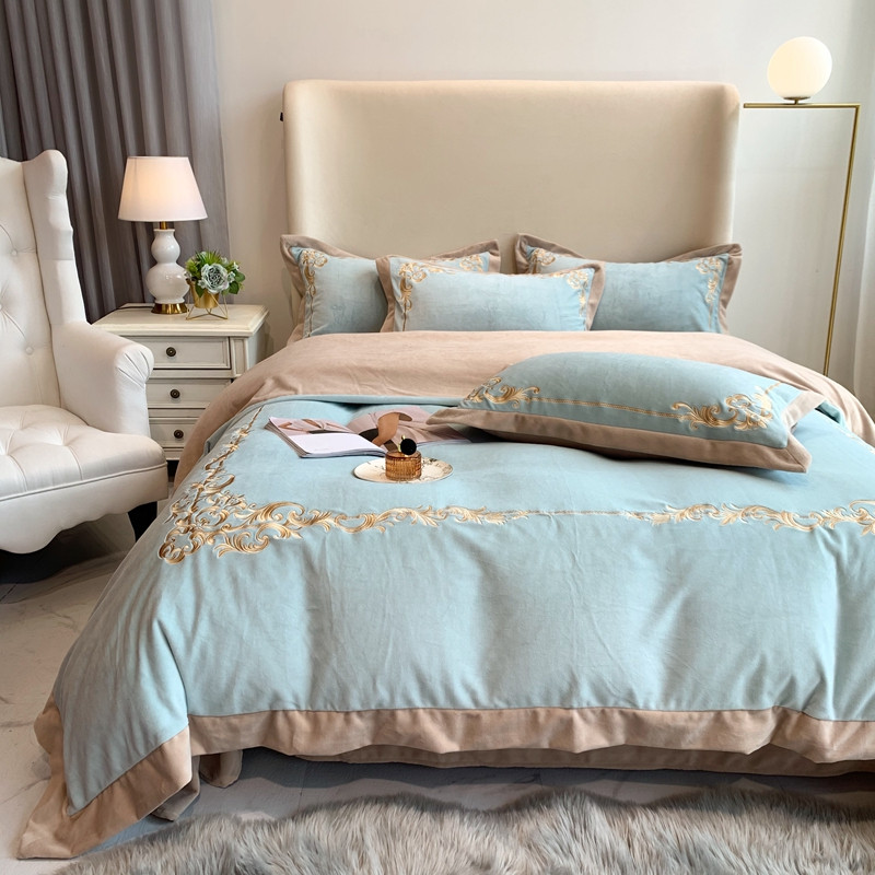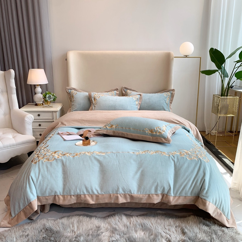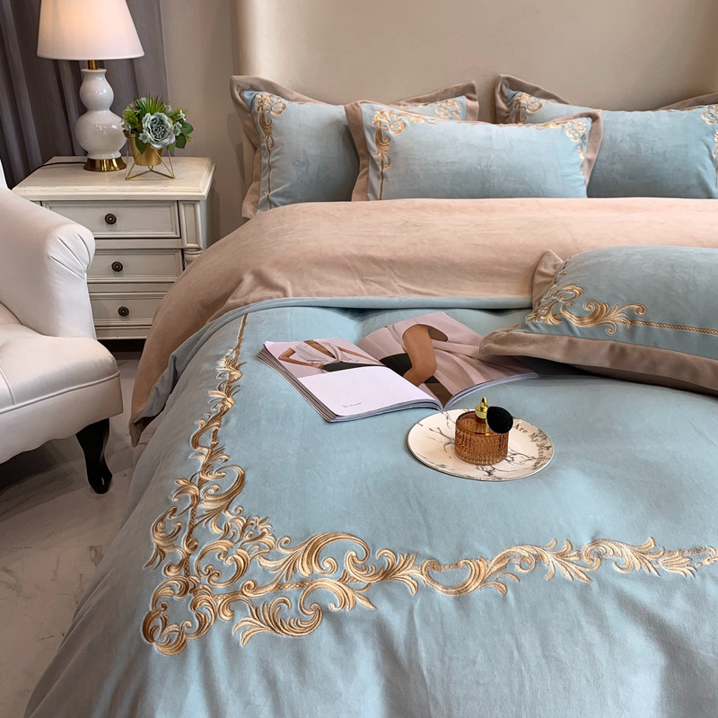 商品名称:馨蕊2022新款秋冬轻奢煦暖绒系列四件套 巴比伦-湖水蓝