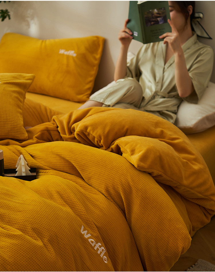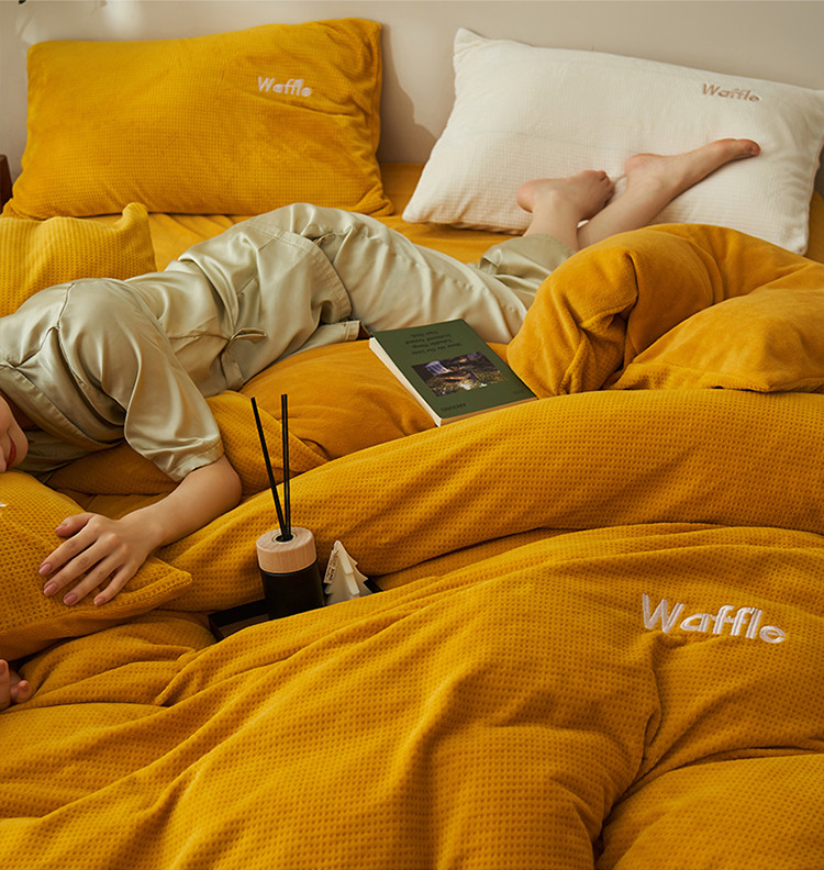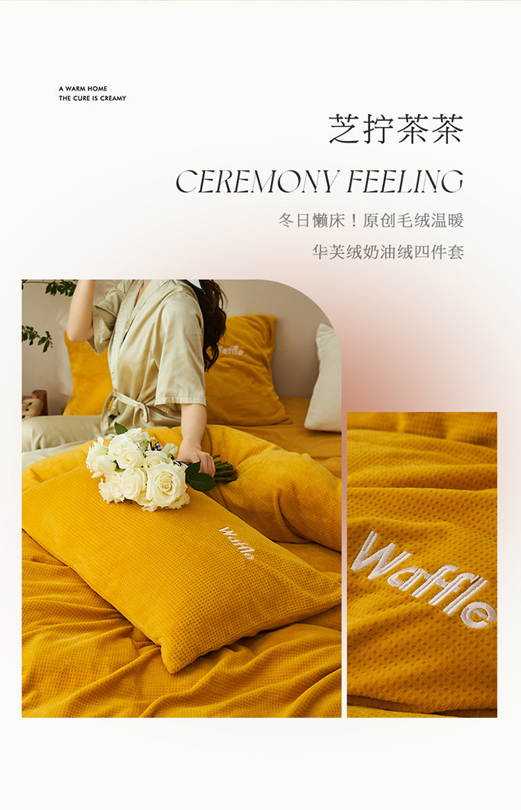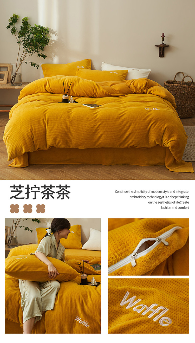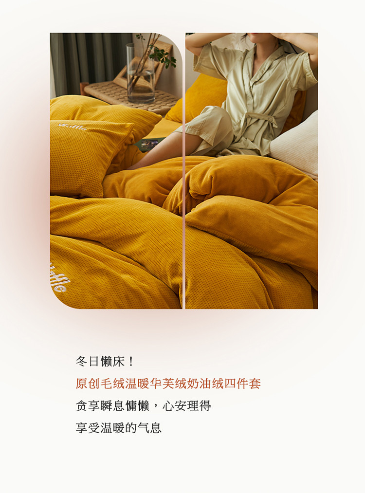 晨曦家纺 2022新款原创毛绒温暖华芙绒奶油绒四件套 芝拧茶茶