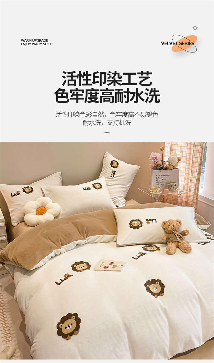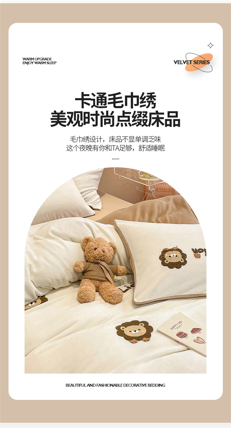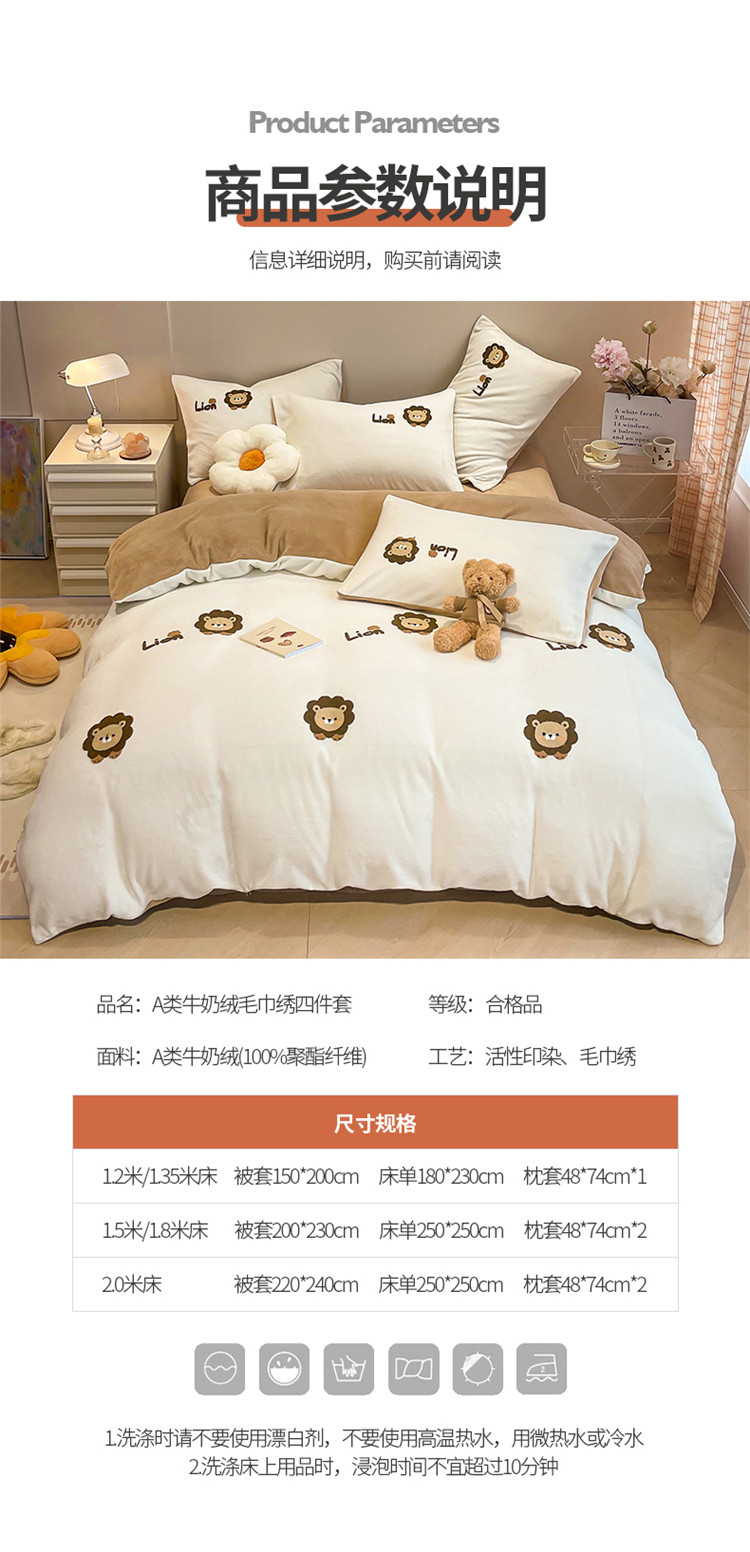 当前位置: 91家纺网 > 商品网购 > 床品套件 > 四件套 > 牛奶绒四件套 > 懒猫 2022新款牛奶绒毛巾绣四件套 小狮子