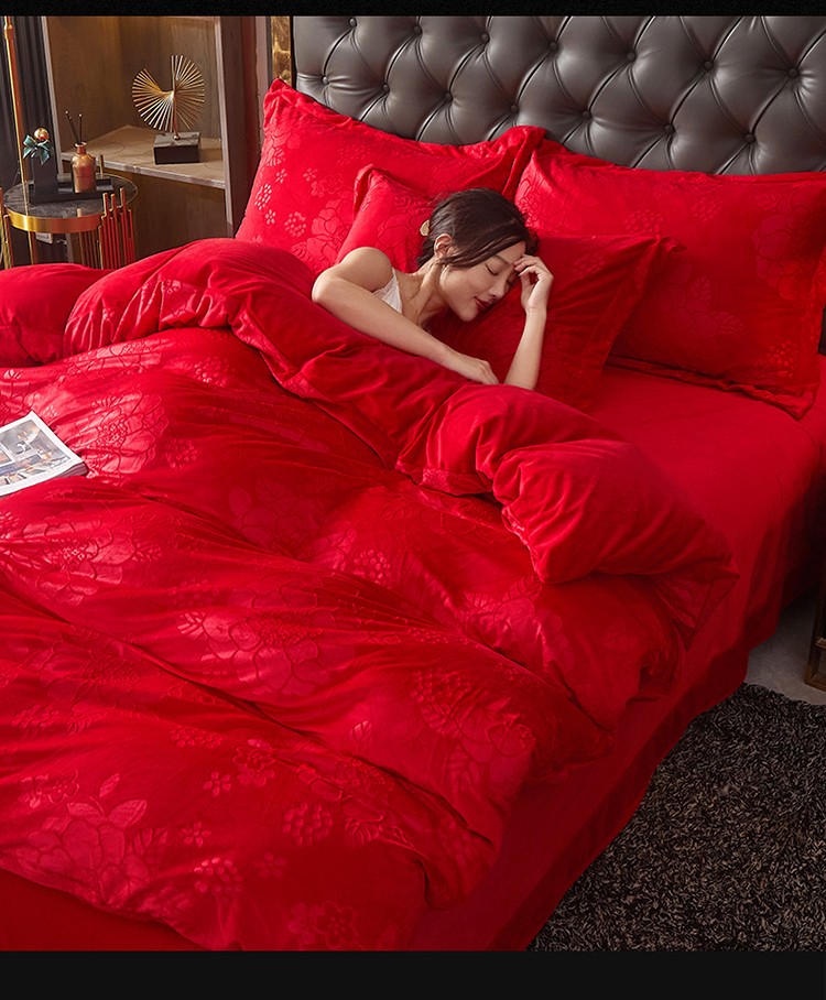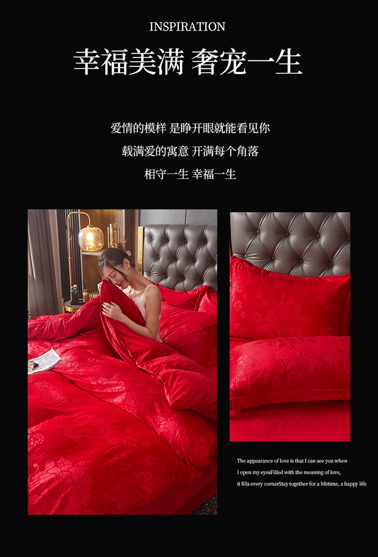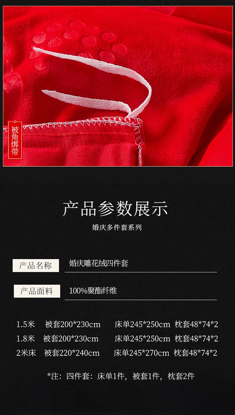 商品名称:2025新款婚庆雕花绒四件套 花开富贵