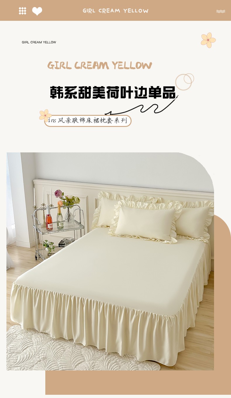 商品名称:乐卧022新款亲肤棉磨毛单品床裙枕套 黄色