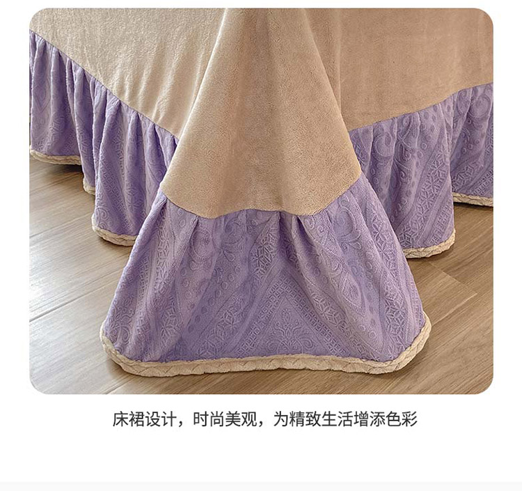 铠畅 2022新款A类烂花牛奶绒床裙四件套 法式浪漫浅紫