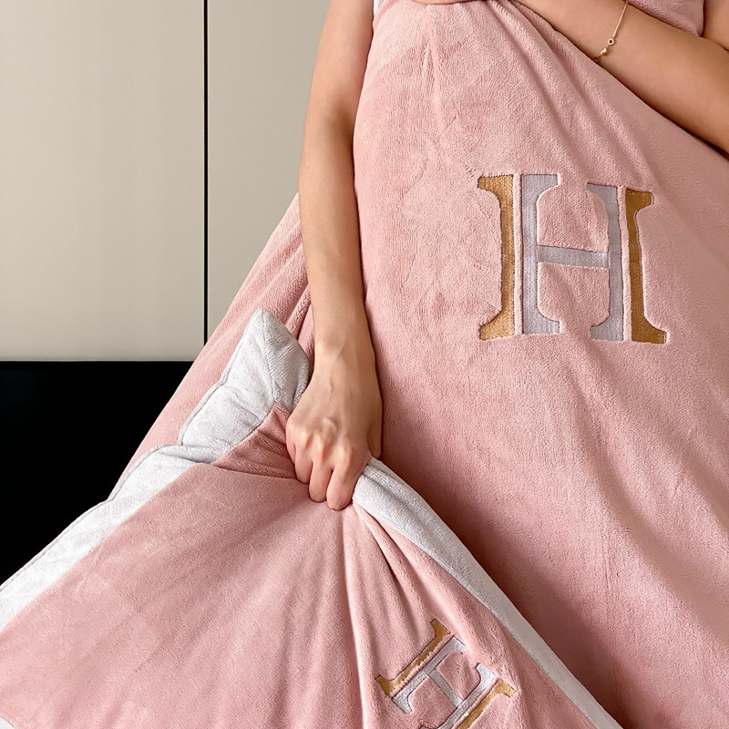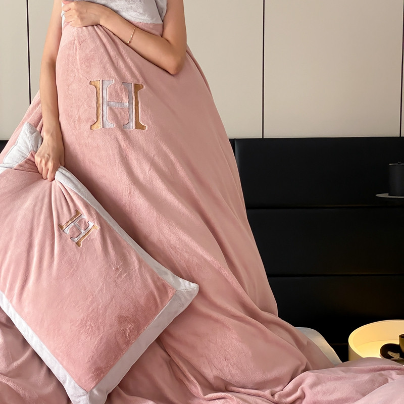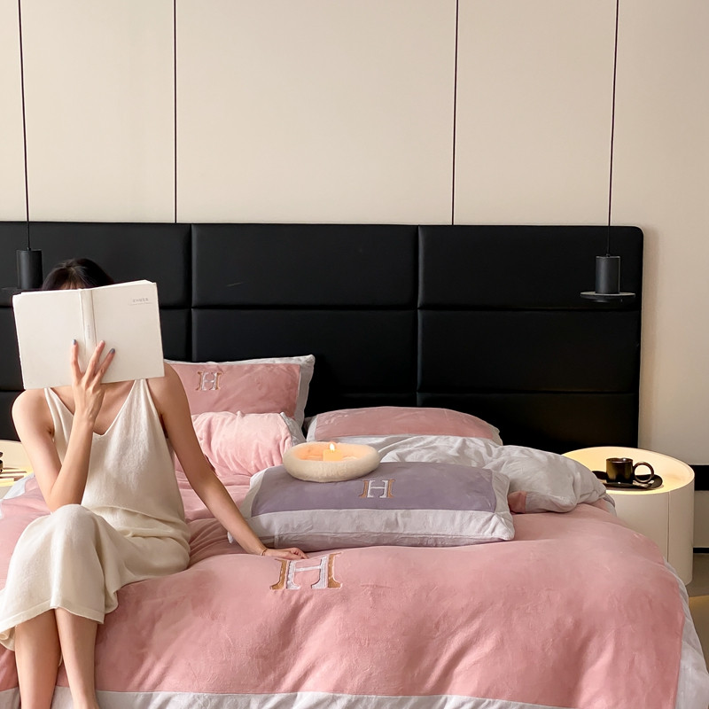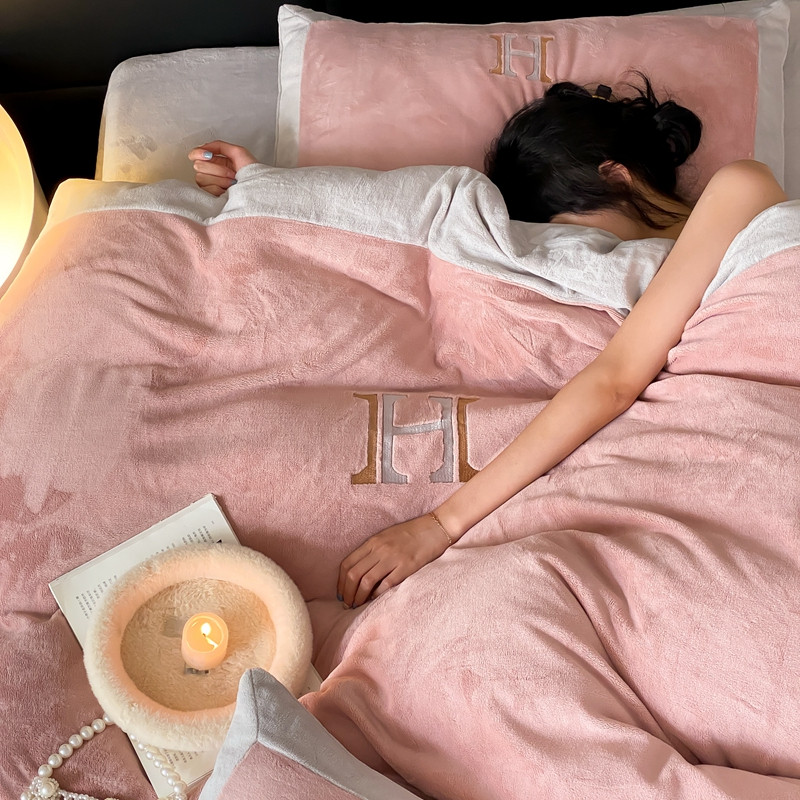 橘滋 2022新款秋冬高端牛奶绒四件套-拼角H模特图 H 黛粉