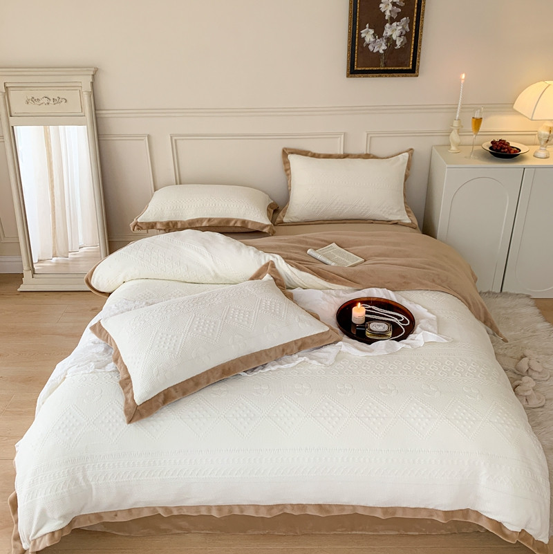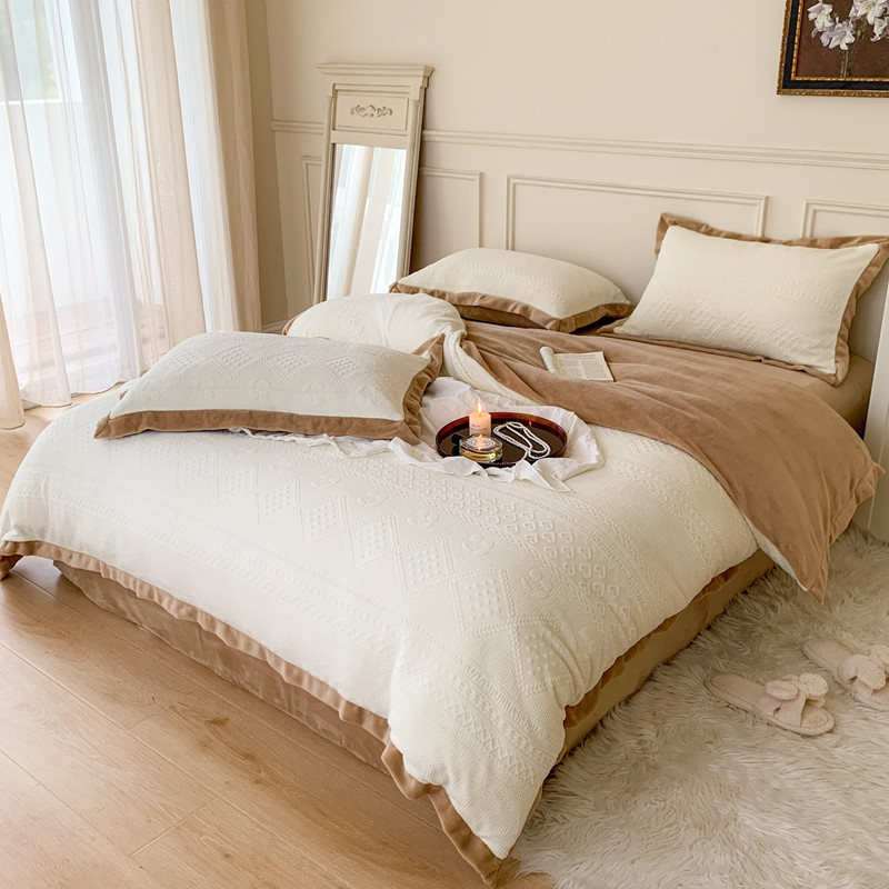 商品名称:圆岛 2022新款四色入3D雕花牛奶绒保暖四件套 风格二 温咖