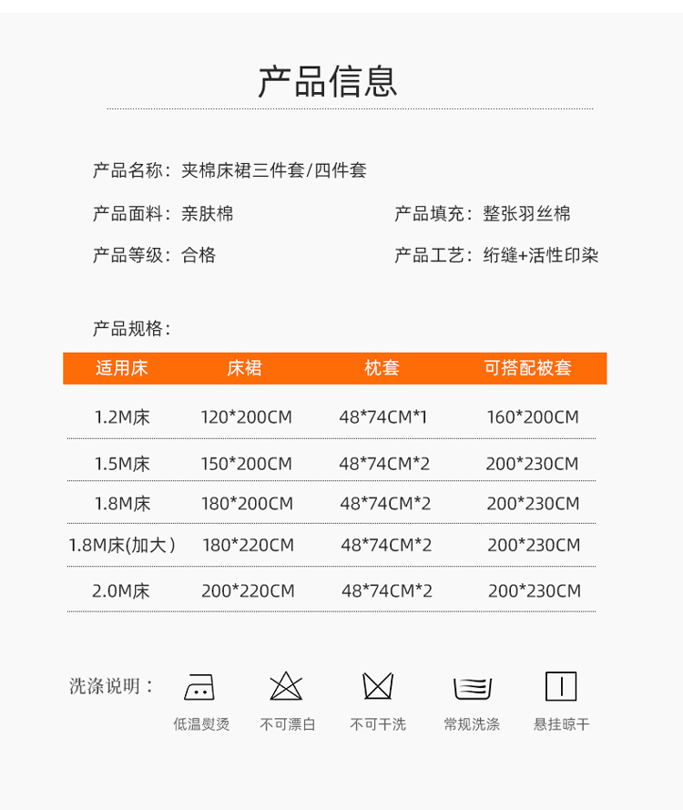 1.8米加大床裙(床裙180*220cm) 四件套 | ¥87.00 |