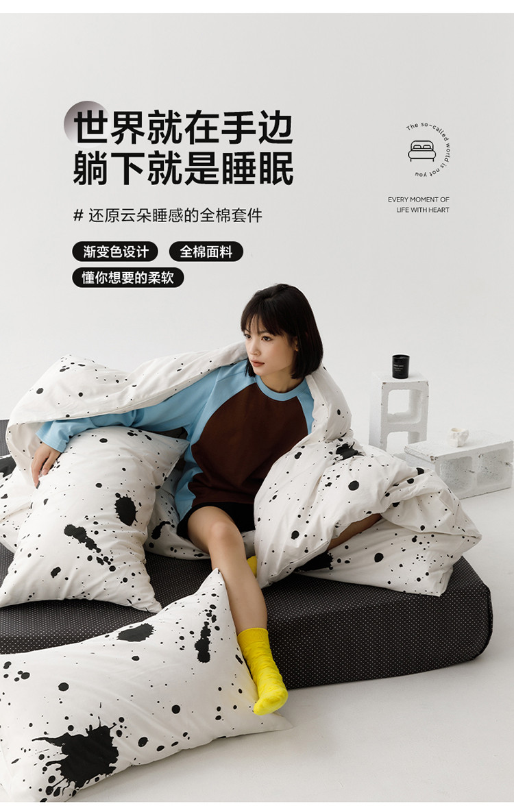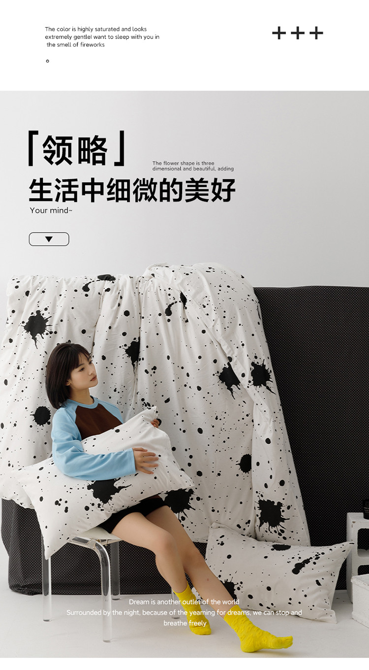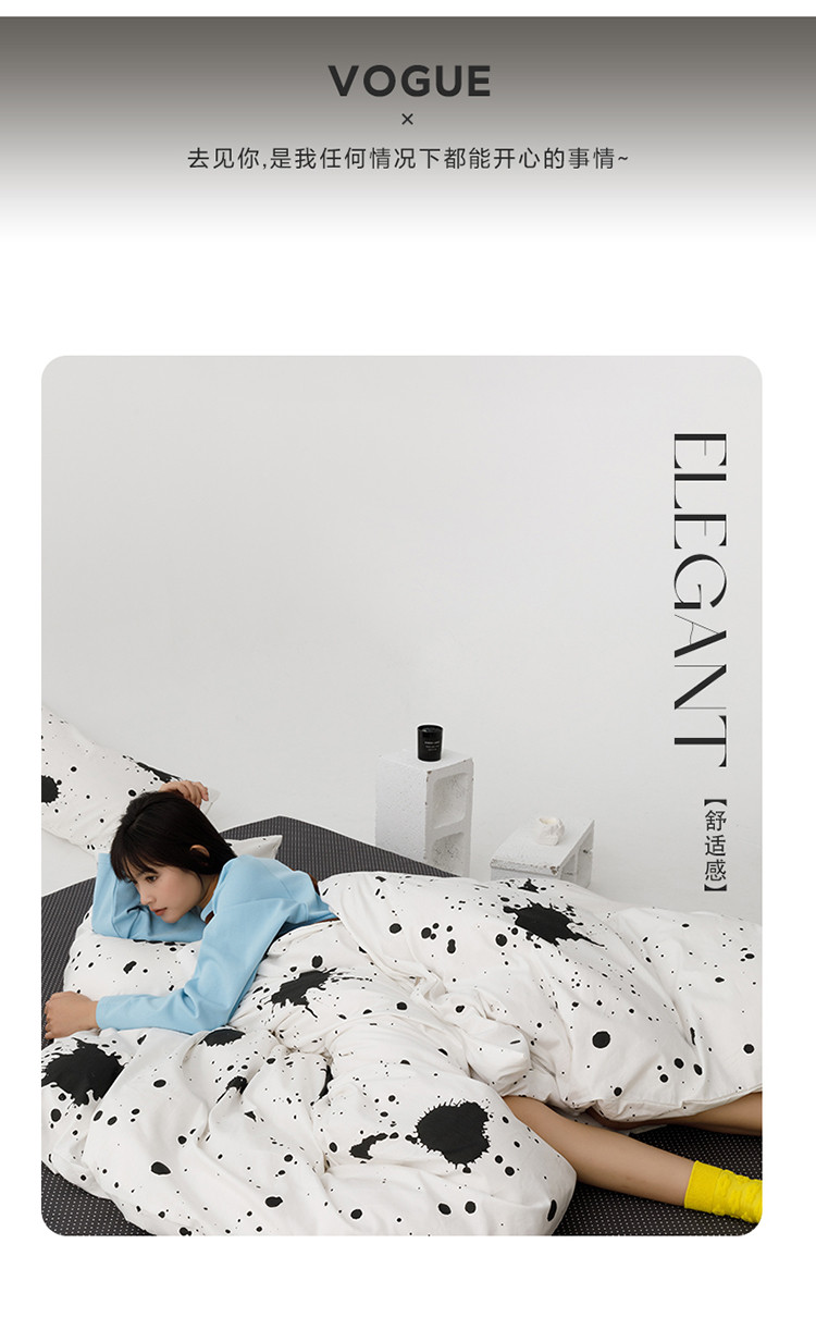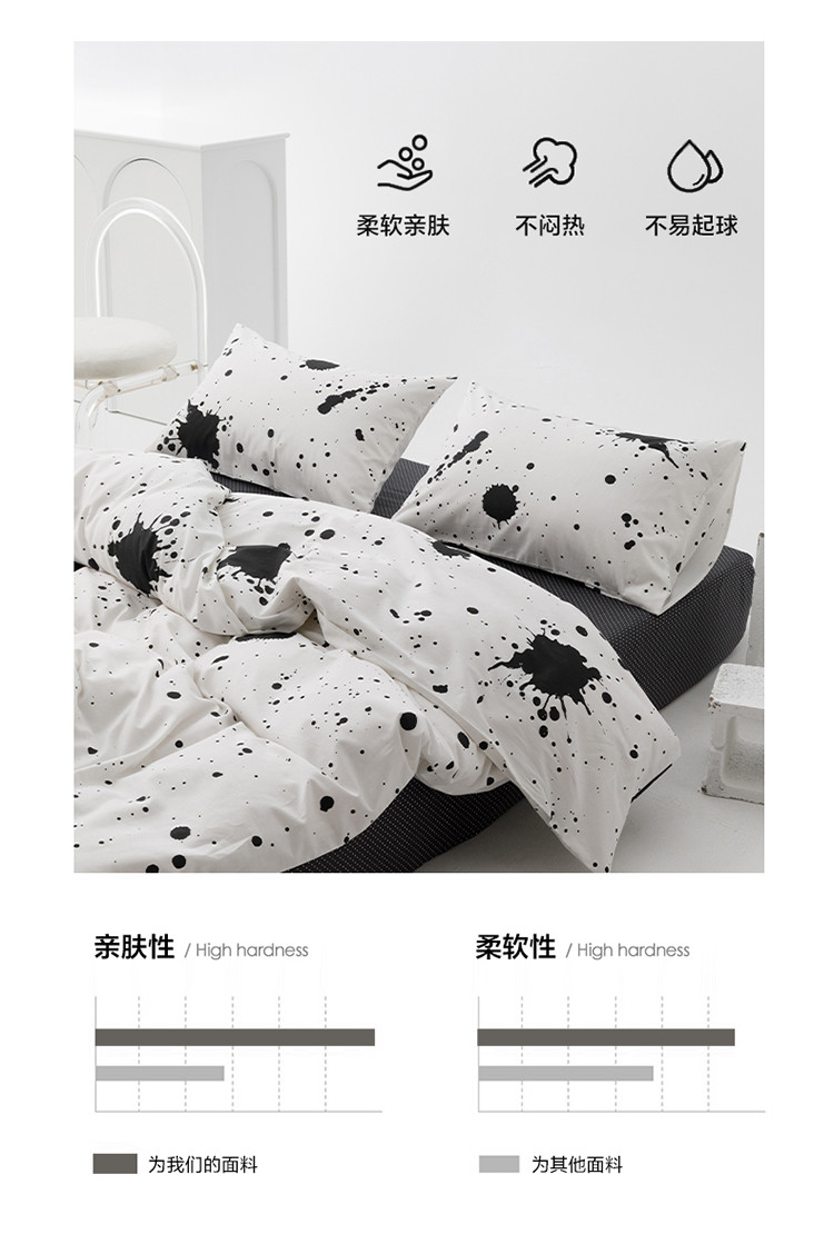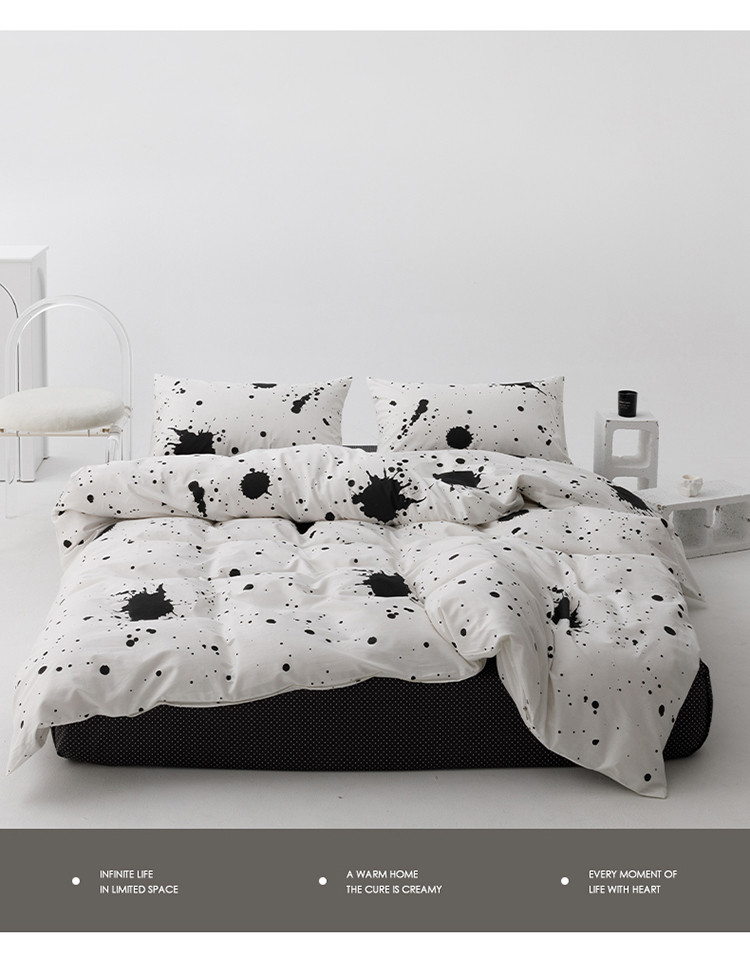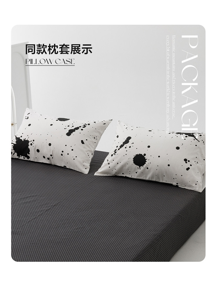 商品名称:雅居纺 2023新款13070黑白系全棉四件套 墨迹