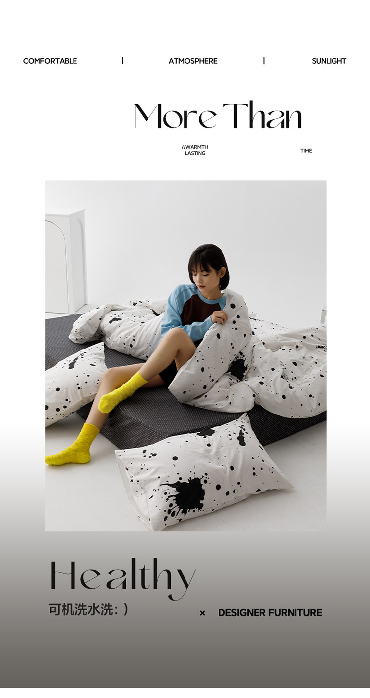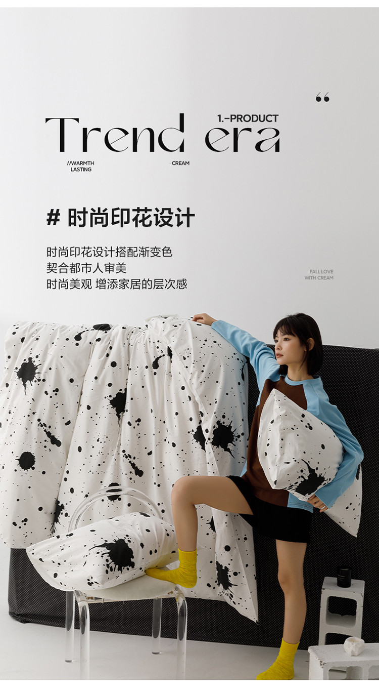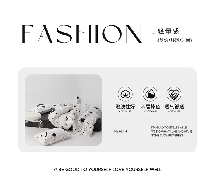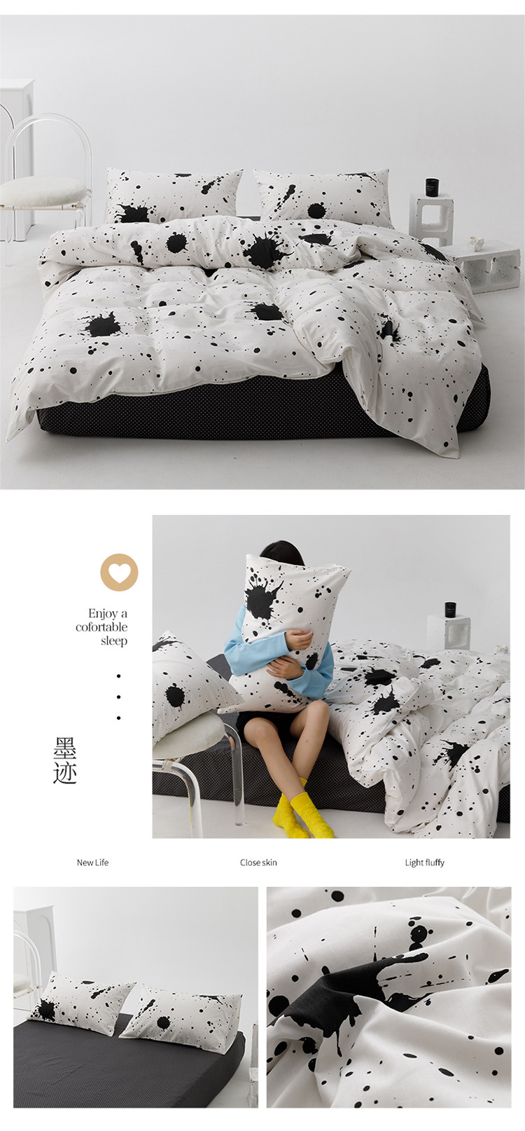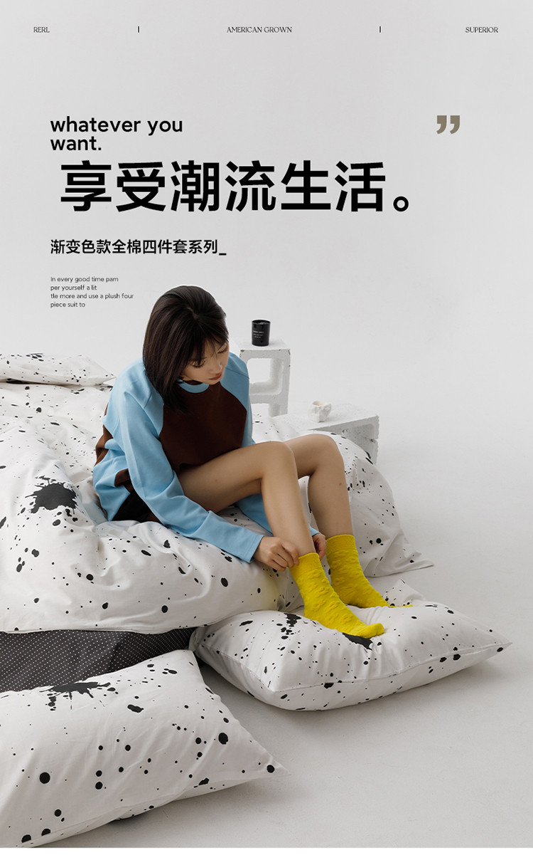 商品名称:雅居纺 2023新款13070黑白系全棉四件套 墨迹