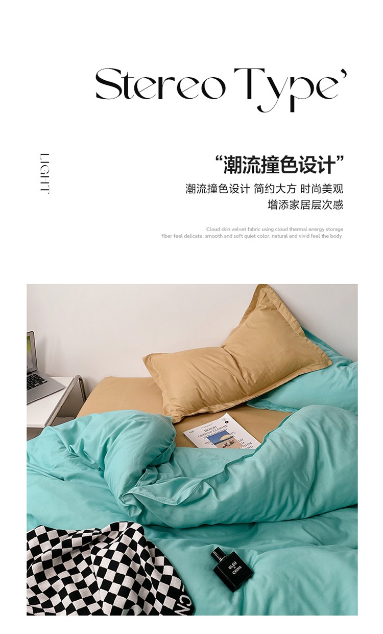 (总) 贝拉梦 2023款亲肤棉纯色拼色治 愈系四件套