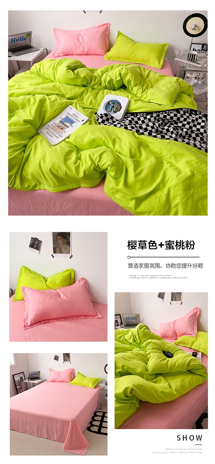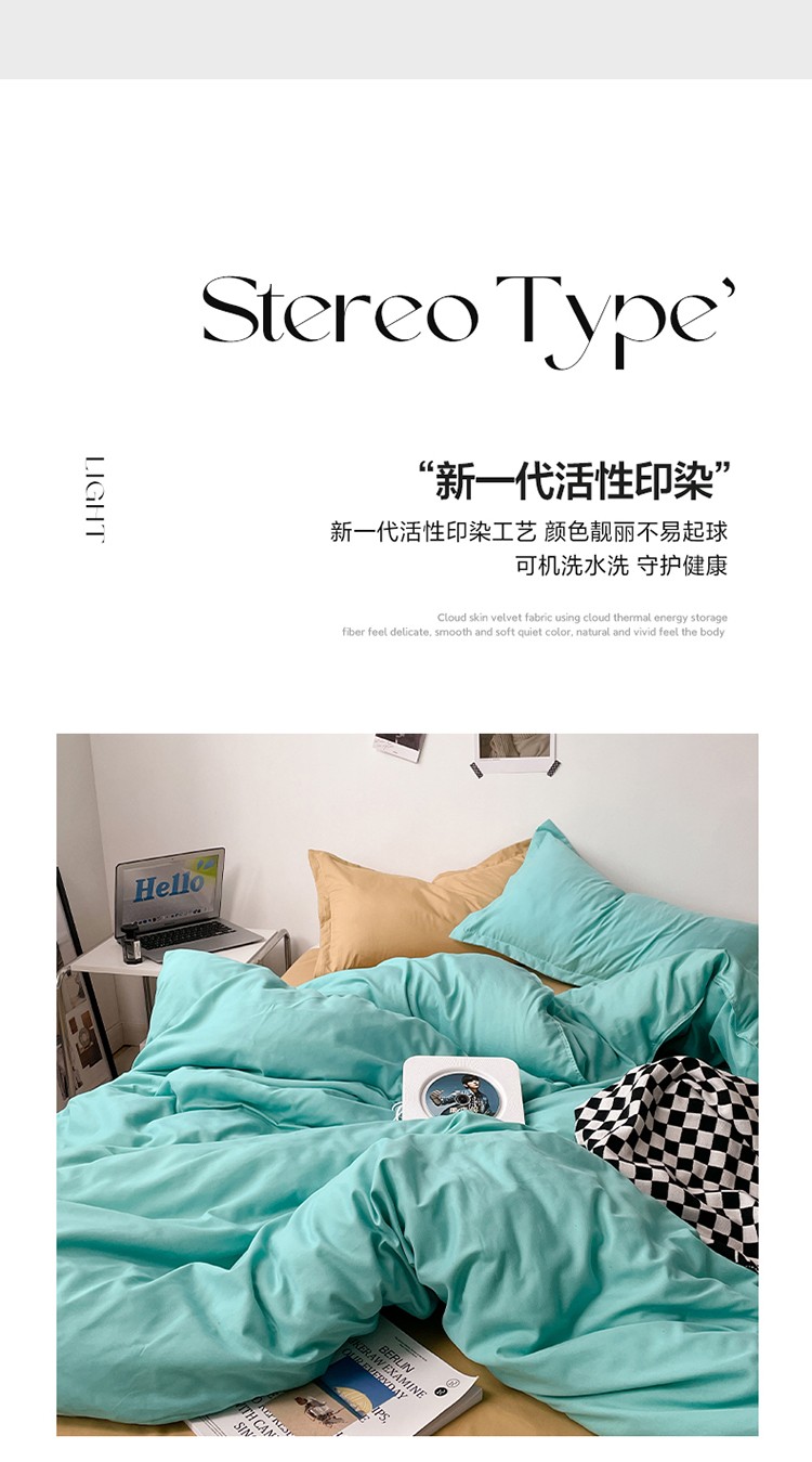 (总)贝拉梦家纺 2025新款纯色磨毛双拼亲肤棉四件套,暗黑骑士,半熟青柠,蓝色星河,奶油香草,乌梅子酱