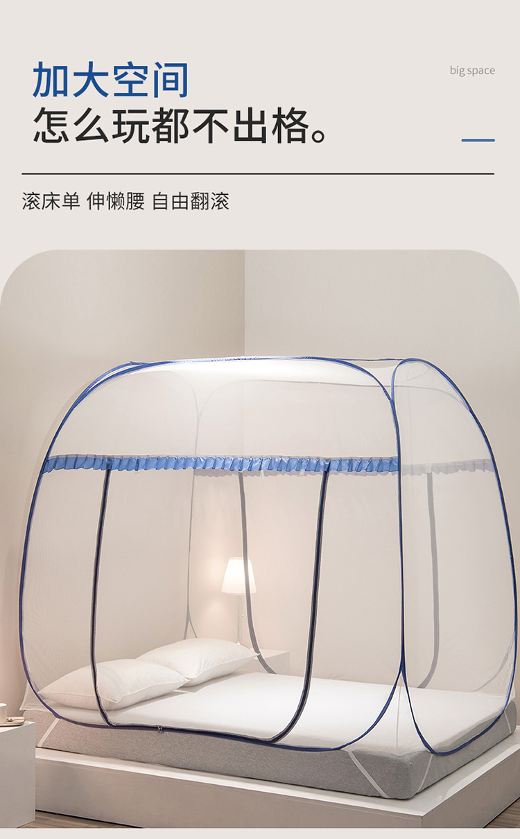 商品名称:佳梦家纺 2023新款跑量款免安装蒙古包蚊帐 大顶加密云顶蓝