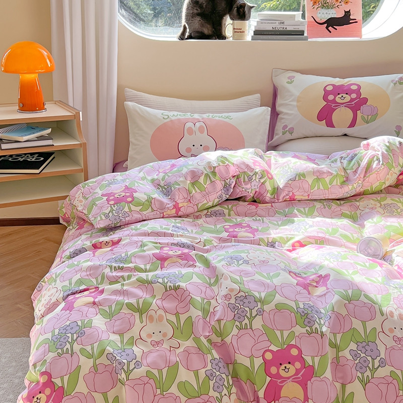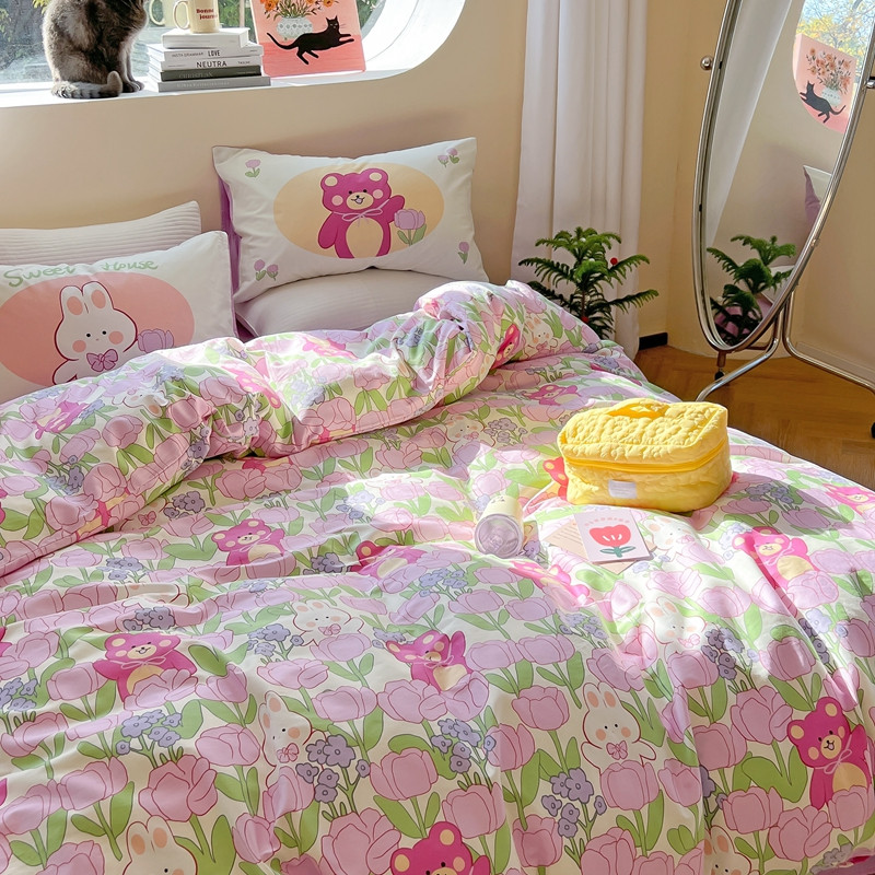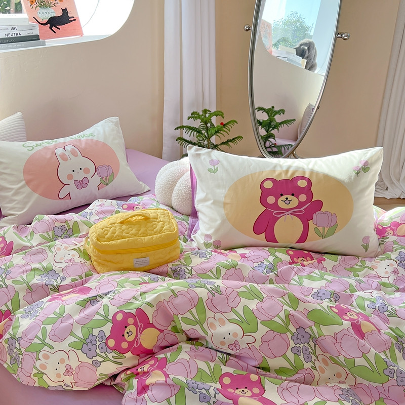 (总)柚子YOUTH 2025新款全棉双层纱贴布绣四件套,棒球熊猫,贝雷帽,冰淇淋小熊,格子玩偶,碎花小兔,小黑猫