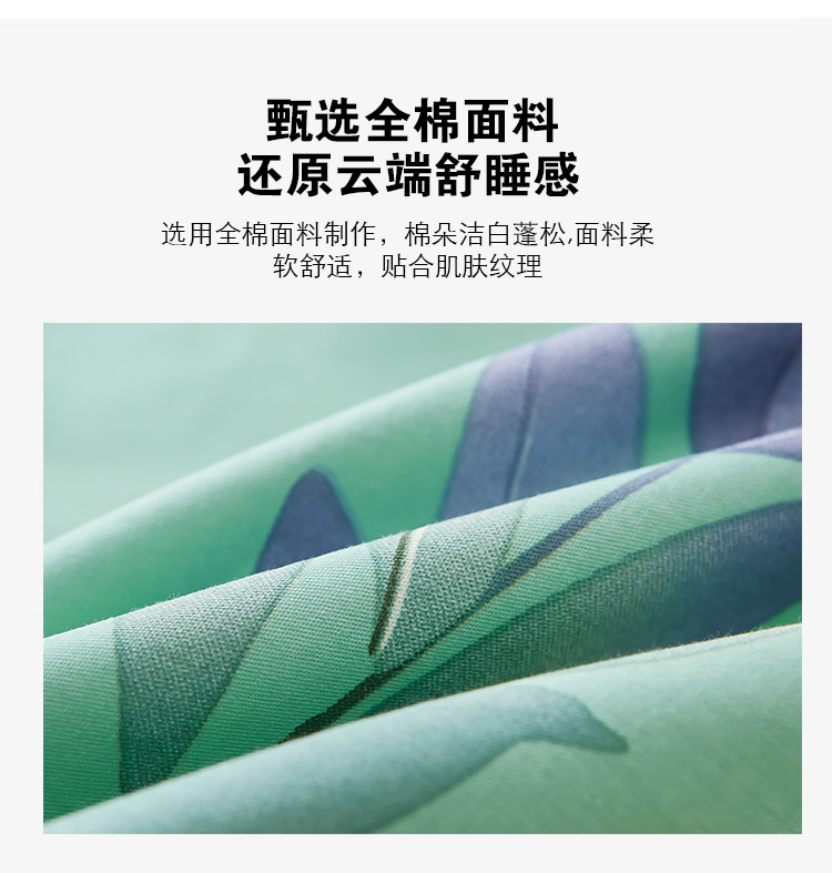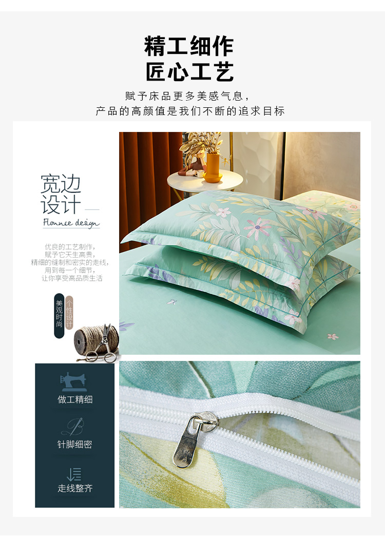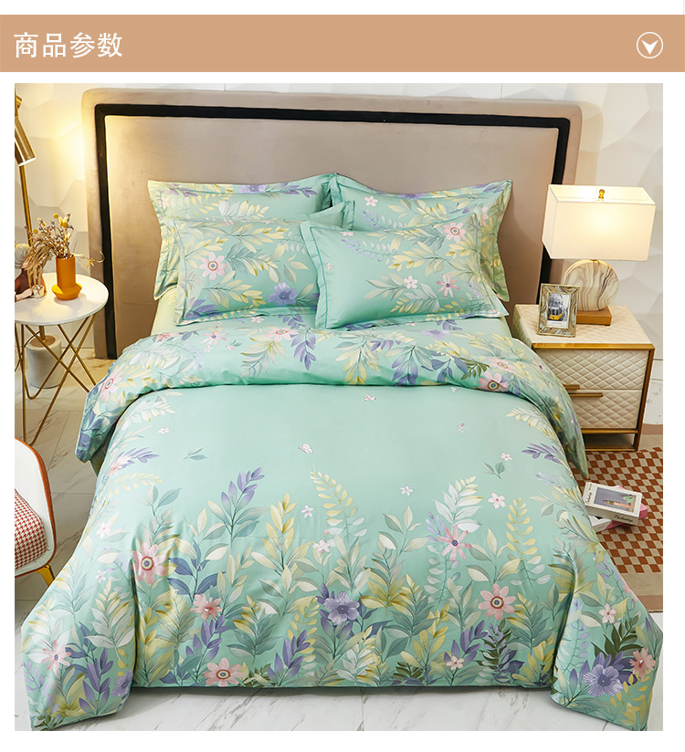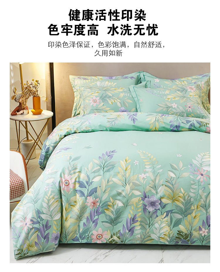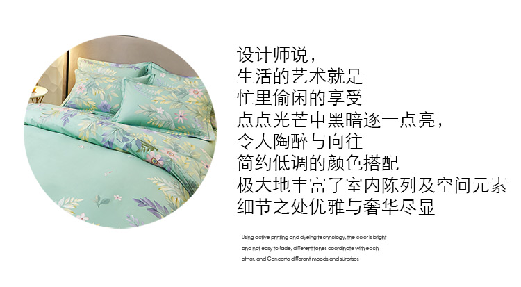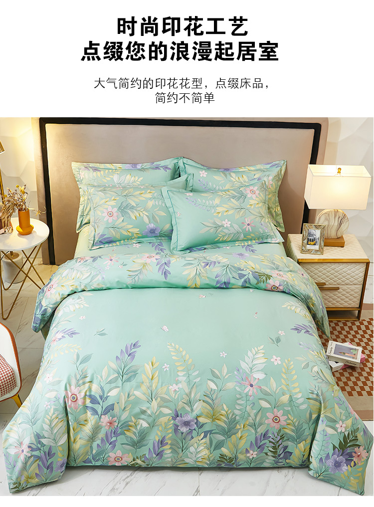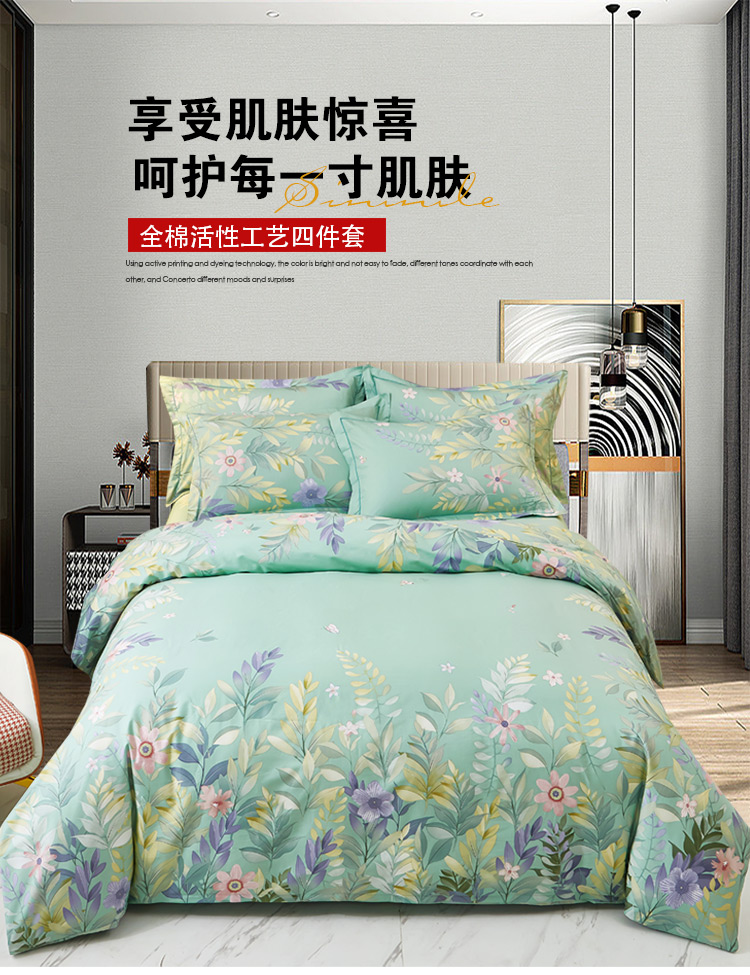 商品名称:雲归梦2023新款13372全棉活性大版印花简约居家四件套随园诗话-绿