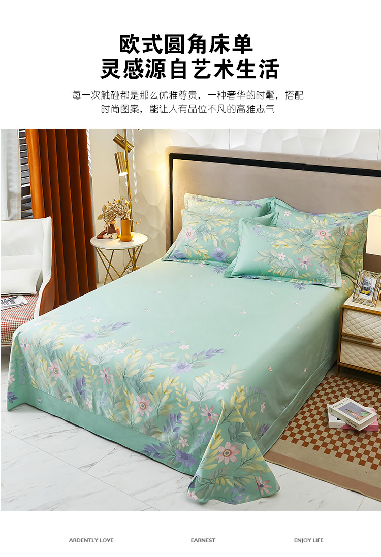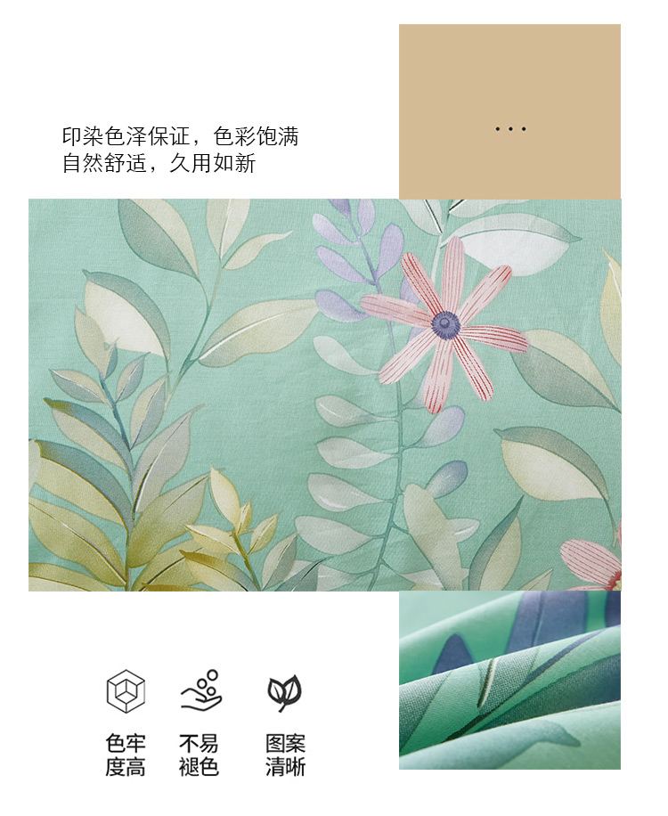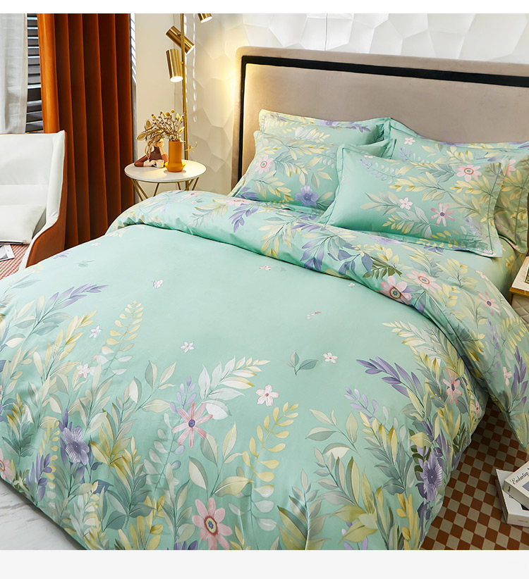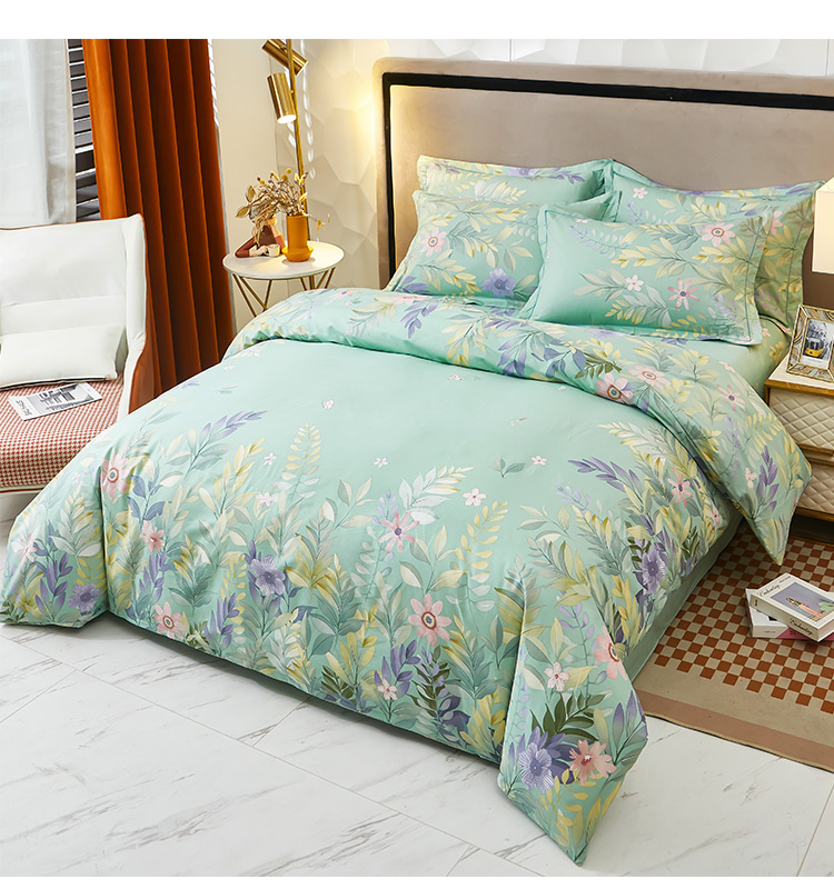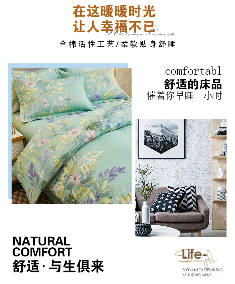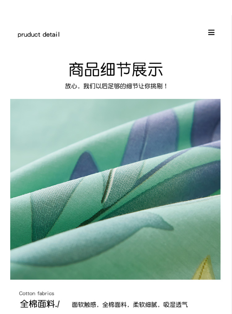 商品名称:雲归梦2023新款13372全棉活性大版印花简约居家四件套随园诗话-绿