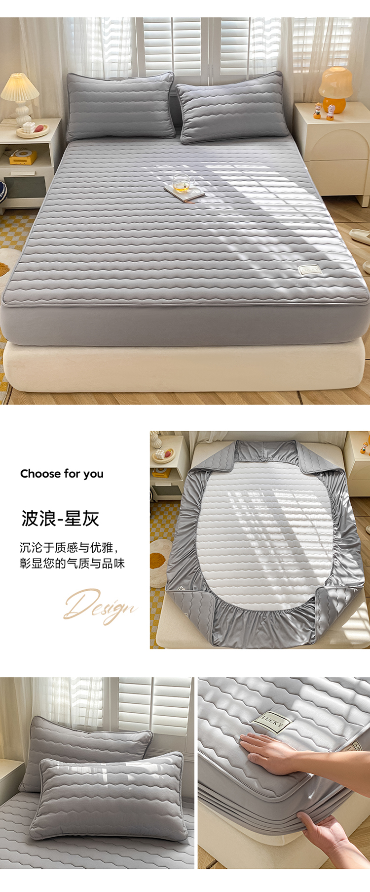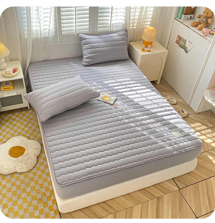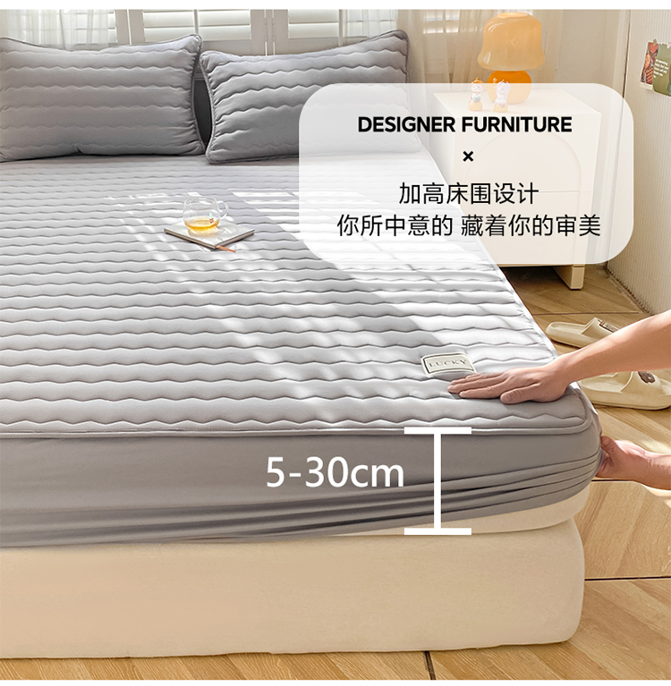 芬晴家纺2023波浪方格夹棉床笠 波浪星灰