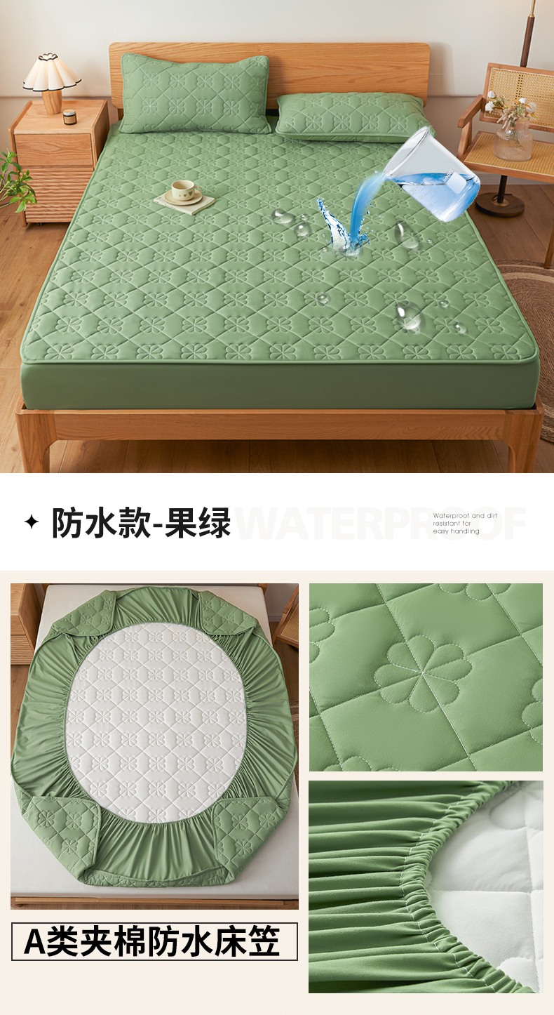 • 91家纺网 家纺一手货源 找家纺 九亭 2023新款A类原棉夹棉防水款床笠床罩 防水款-果绿
